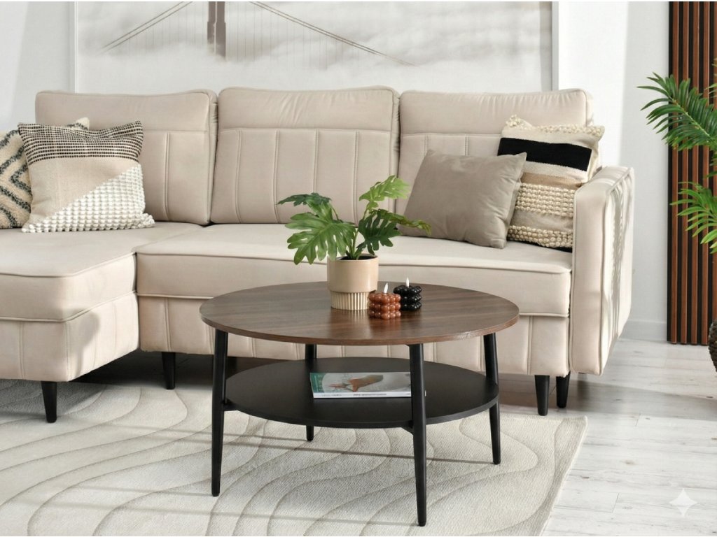 Jeho okrúhla doska s priemerom 80 cm ponúka pohodlný priestor na všetko, čo chcete mať poruke – od kávy a občerstvenia až po dekorácie a knihy. Vyzerá perfektne vedľa pohovky alebo rohovej pohovky a vytvára ucelený a štýlový relaxačný priestor. Medzi kľúčové vlastnosti patria:
