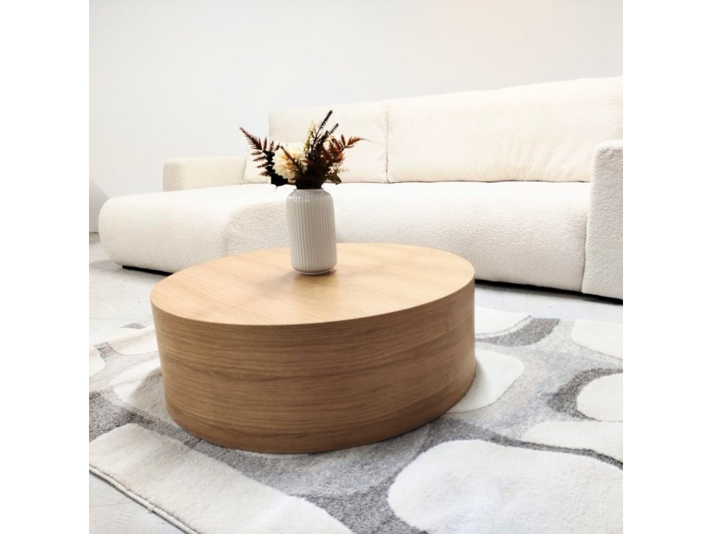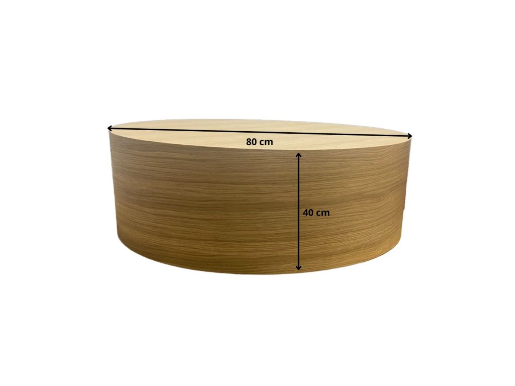 Stolová doska v prevedení dubovej dyhy dodáva stolíku prírodný vzhľad a príjemnú štruktúru dreva. Kombinácia kvalitnej MDF dosky s dubovou dyhou zabezpečuje dobrú pevnosť, stabilitu a dlhú životnosť nábytku. Konferenčný stolík s priemerom 80 cm patrí medzi univerzálne rozmery – hodí sa k väčšine sedačiek aj rohových súprav.