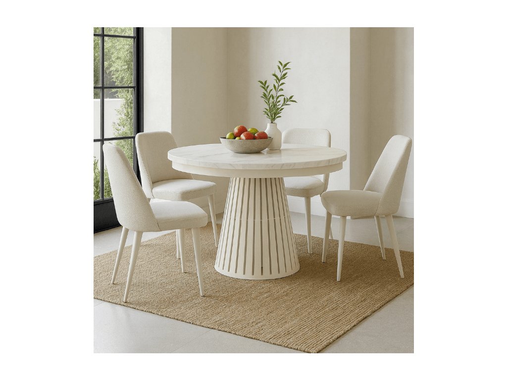 Okrúhly rozkladací jedálenský stôl GAVIN plus biely mramor + kašmír
