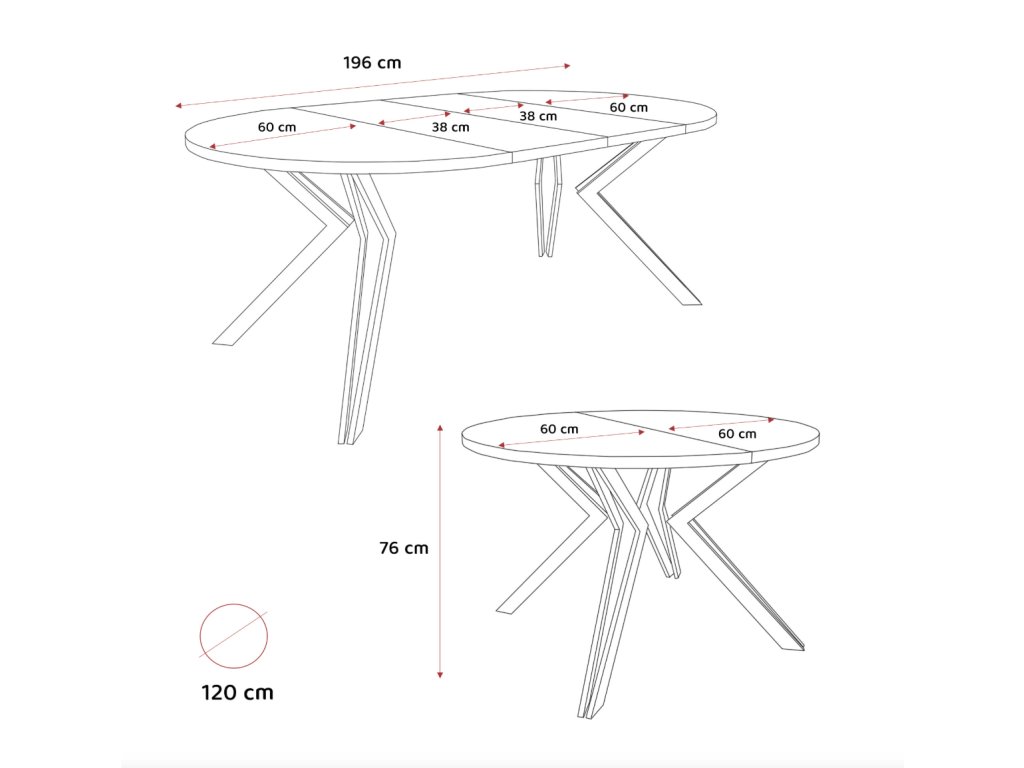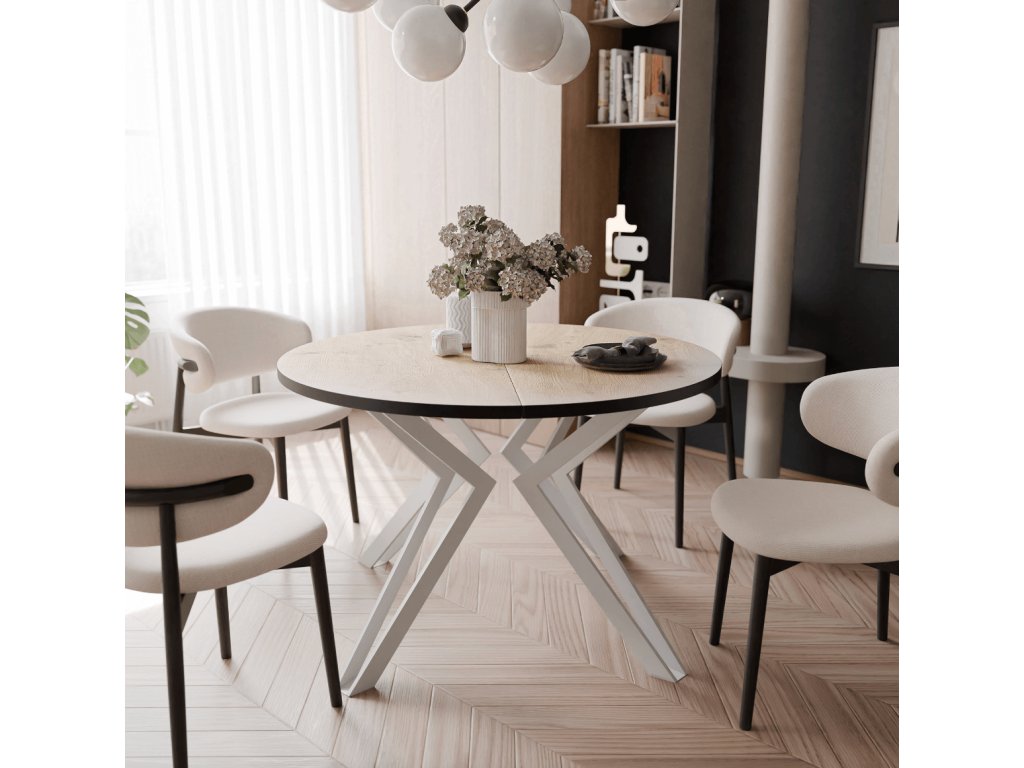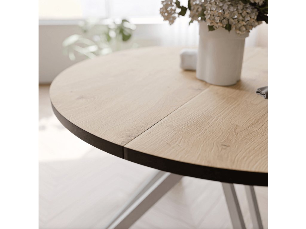 Okrúhly stôl Kody je ideálnym riešením do kuchyne alebo obývačky. Okrúhla stolová doska vám umožní príjemne stráviť čas so svojimi blízkymi a po rozložení môžete oslavovať dôležité udalosti vo väčšej skupine.