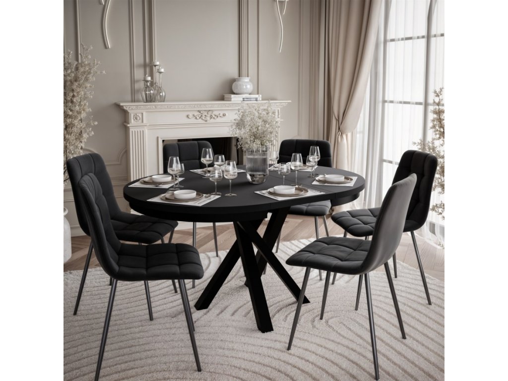 Okrúhly rozkladací jedálenský stôl MARCIUS 100-140cm čierna
