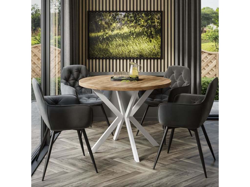 Moderný okrúhly rozťahovací stôl Marion spĺňa prísne kritéria kvalitného spracovania a dizajnu. Kovové nohy dodávajú stolu dizajnový vzhľad a dodajú celému interiéru exkluzívny charakter. Táto konštrukcia z ocele bola navyše potiahnutá práškovou farbou, vďaka čomu je odolná voči akémukoľvek poškodeniu. Najväčšou výhodou jedálenského stola Marion je možnosť rozkladania a tým zväčšiť stôl až na 176 cm. Na výber z množstva odtieňov.