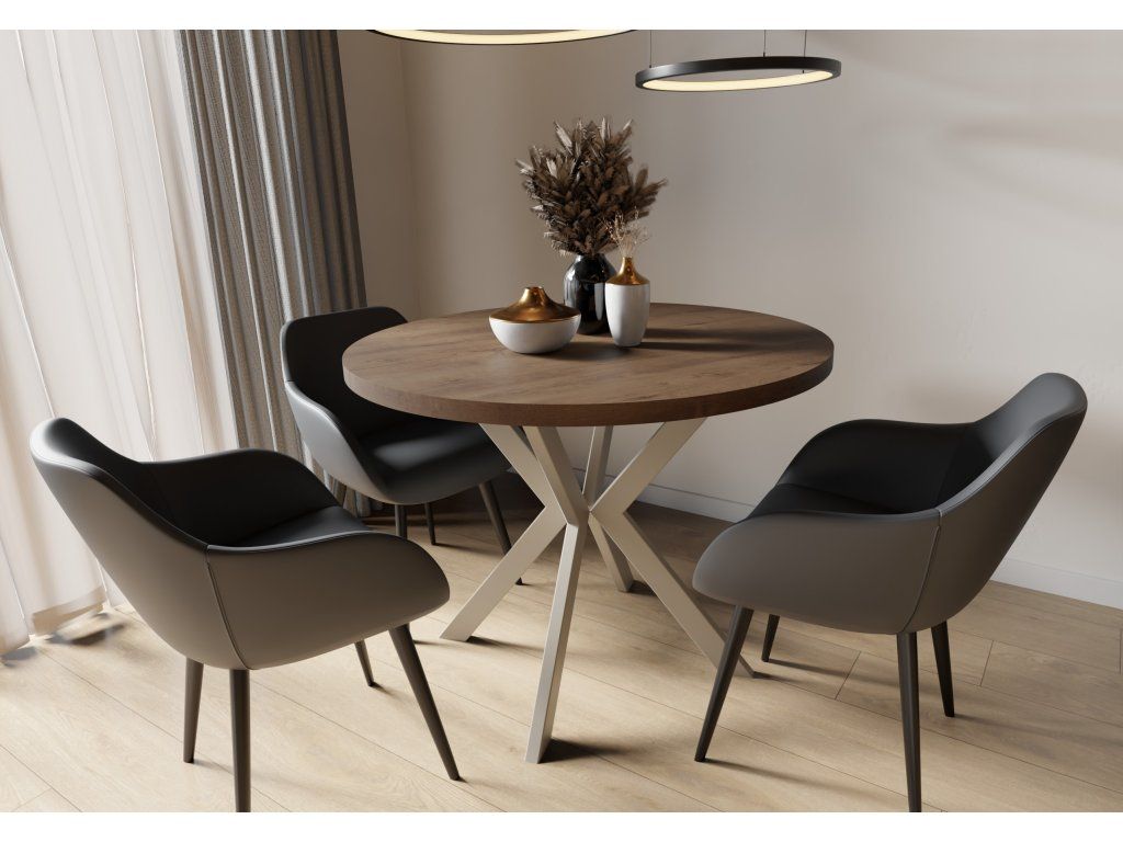 - Okrúhly rozkladací jedálenský stôl MARION v dekore dub lefkas - moderný dizajn, ktorý sa hodí do škandinávskych aj industriálnych interiérov.