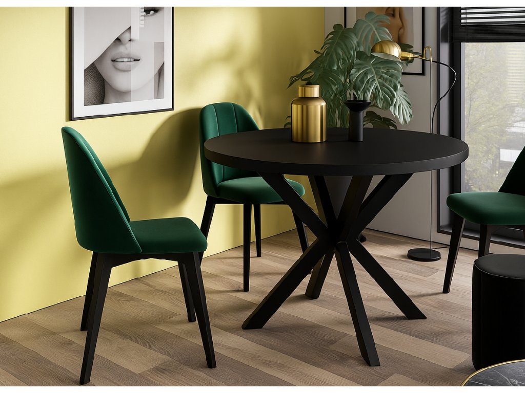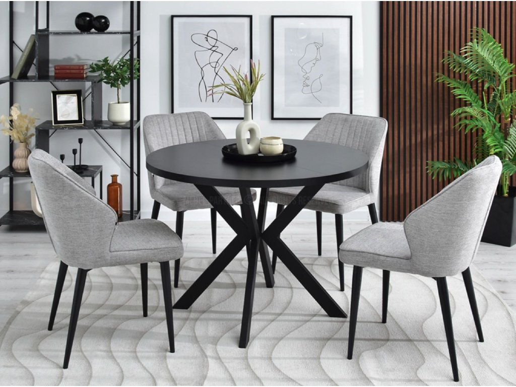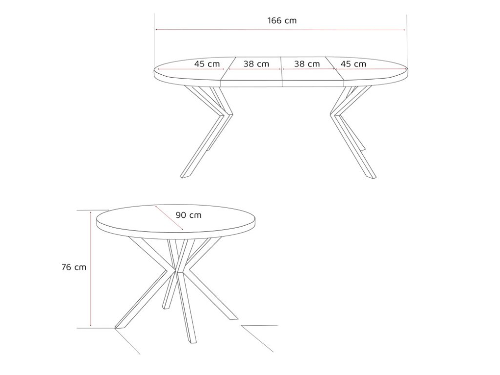 Moderný okrúhly rozťahovací stôl Marion spĺňa prísne kritéria kvalitného spracovania a dizajnu. Masívna doska o hrúbke 3,8 cm vyrobená v odtieni čiernej matnej vám poslúži mnoho rokov. Kovové nohy dodávajú stolu dizajnový vzhľad a dodajú celému interiéru exkluzívny charakter. Táto konštrukcia z ocele bola navyše potiahnutá práškovou farbou, vďaka čomu je odolná voči akémukoľvek poškodeniu. Najväčšou výhodou jedálenského stola Marion je možnosť rozkladania a tým zväčšiť stôl až na 196 cm. Na výber z množstva odtieňov.