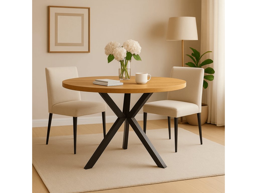 Ideálny pre každodenné stolovanie aj víkendové hostenia. Okrúhly tvar podporuje plynulú komunikáciu a rozkladanie zabezpečí komfortný priestor navyše, keď príde viac hostí.