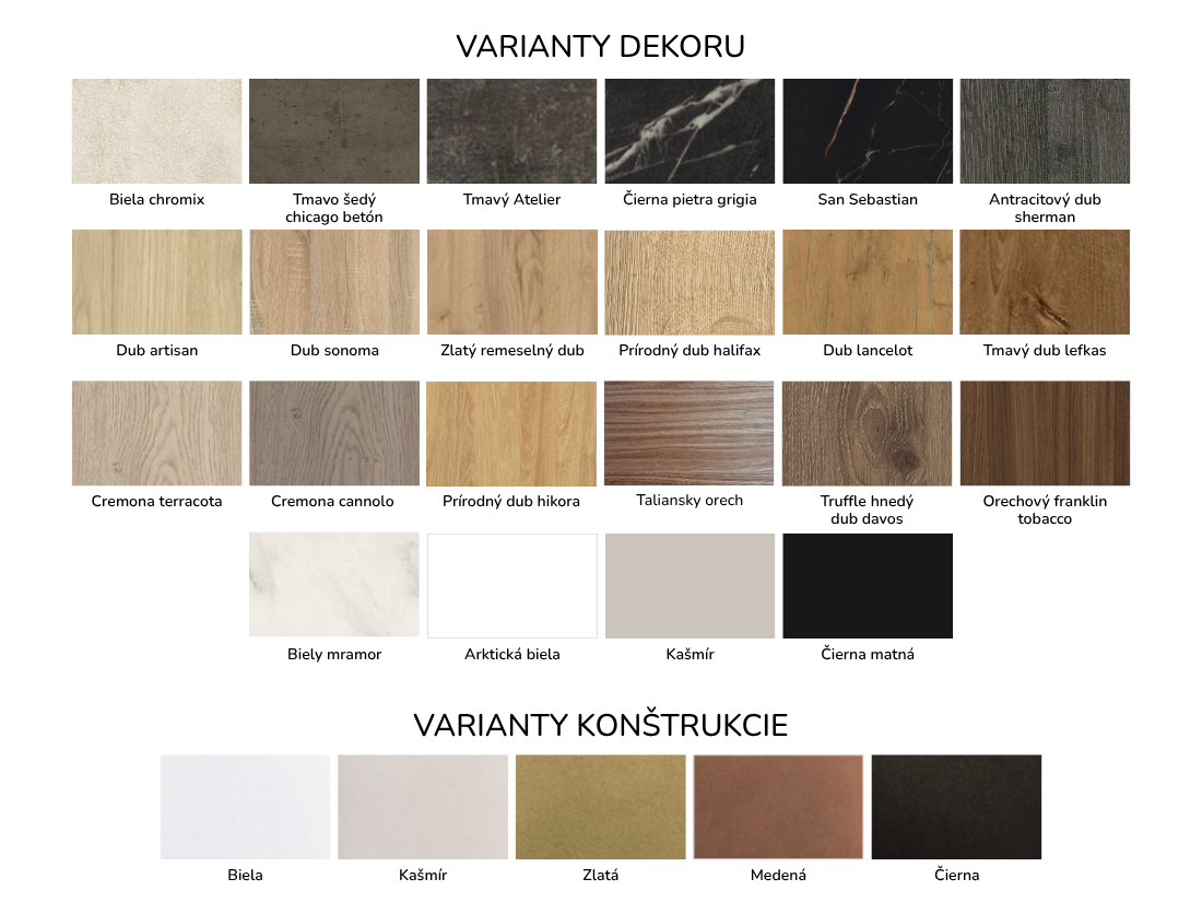 | Materiál dosky | Laminovaná doska cca 36 mm, ABS hrana 2 mm |