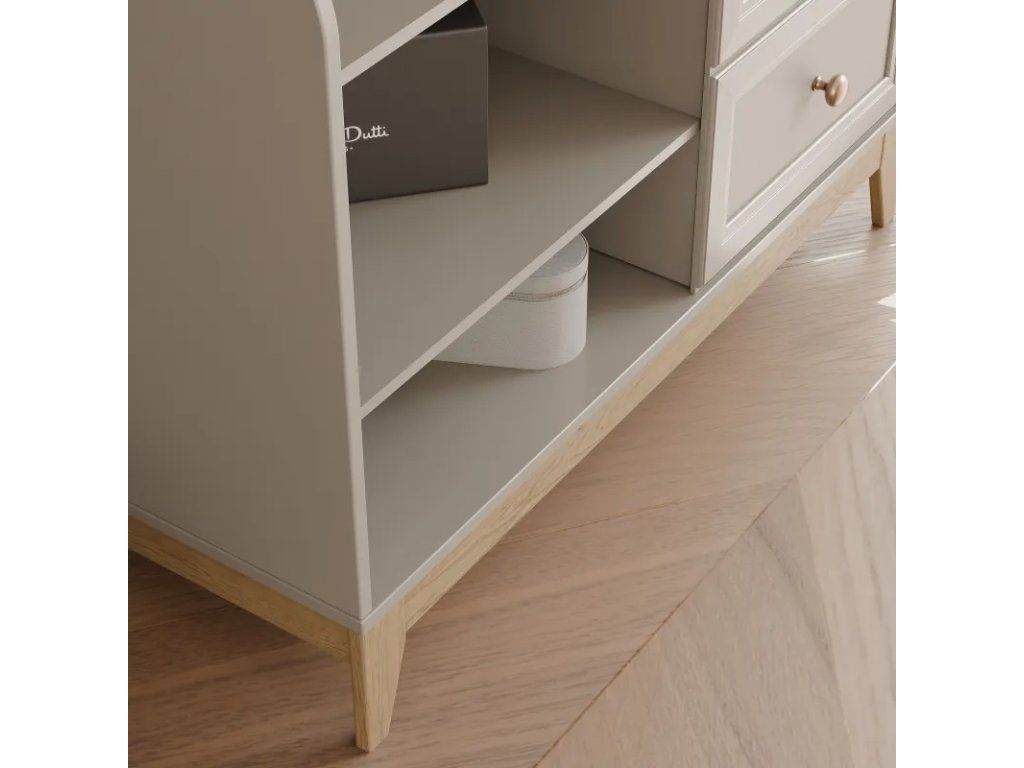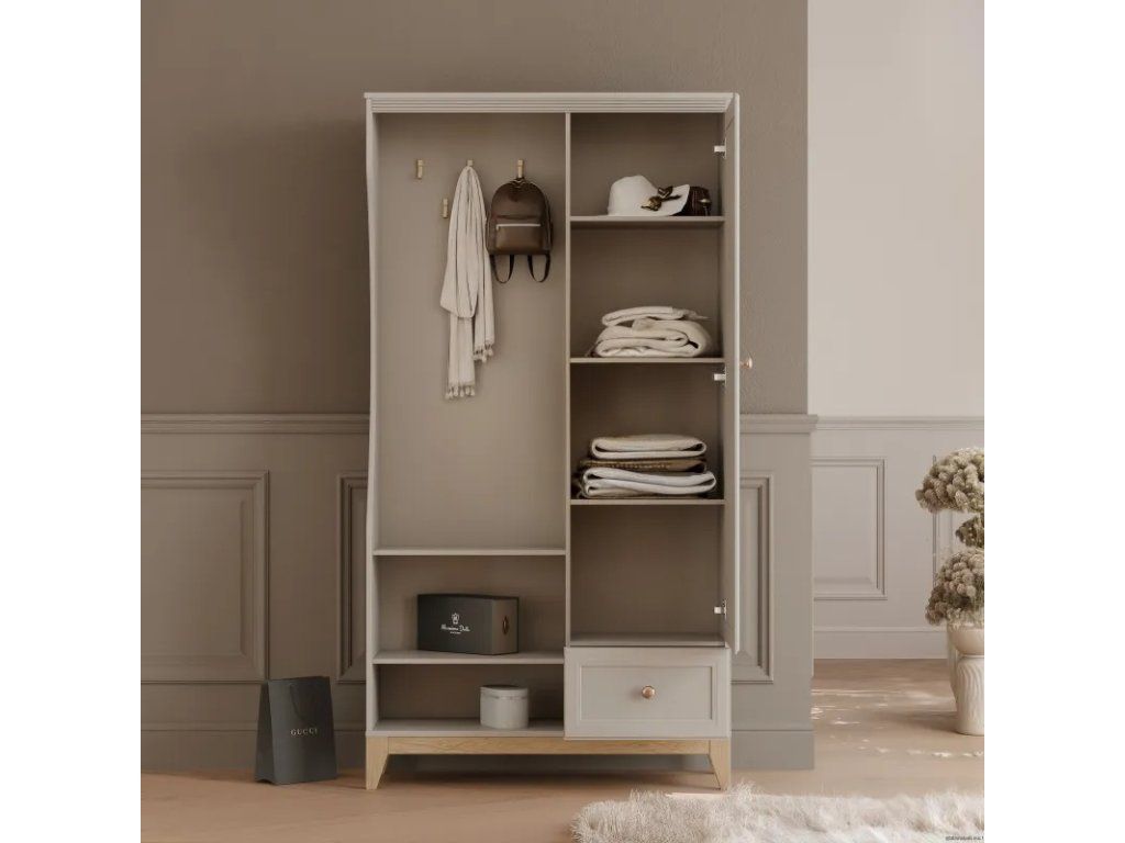 Šatníková skriňa DANNA , vyrobená v módnej kašmírovej farbe , dokonale ladí so súčasnými trendmi v interiérovom dizajne a kombinuje jemnosť s moderným štýlom. Je to perfektné riešenie pre tých, ktorí si cenia estetiku, funkčnosť a solídne spracovanie , no zároveň chcú od samého začiatku vytvoriť útulný a elegantný interiér .