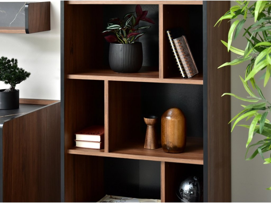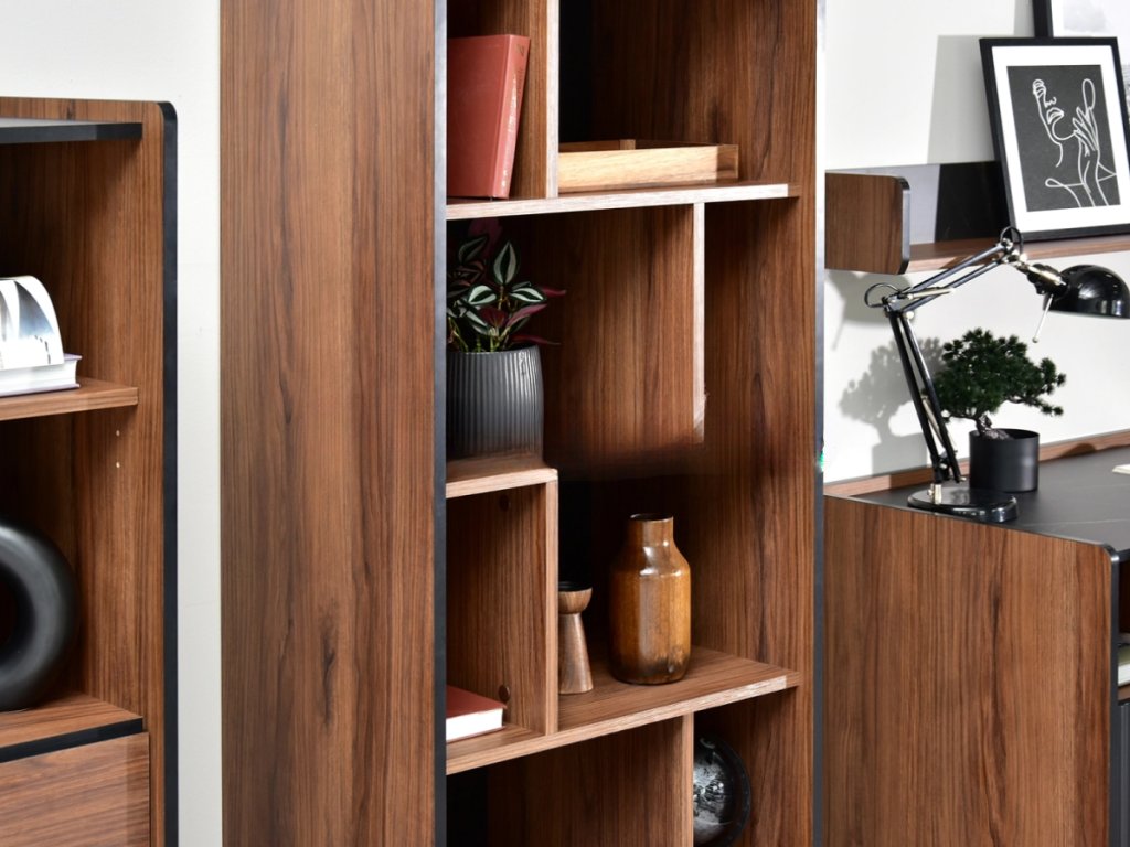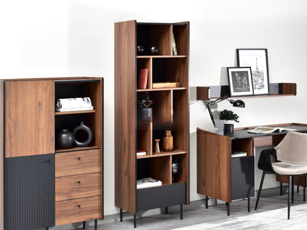 Objavte poličku so zásuvkou VANESSA – stelesnenie elegancie v našej kolekcii nábytku. Táto knižnica , ktorá vytvára harmonický celok s naším nábytkom z celého systému, ponúka päť prakticky umiestnených políc s priehradkami, ktoré uľahčujú organizáciu vašej zbierky kníh.