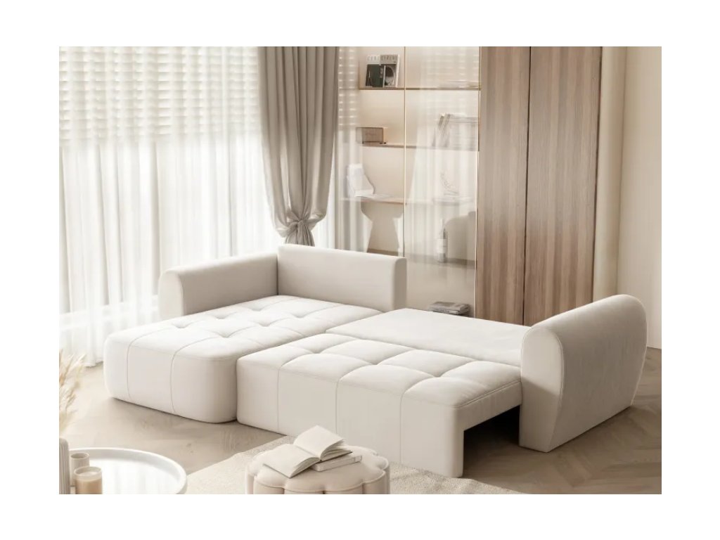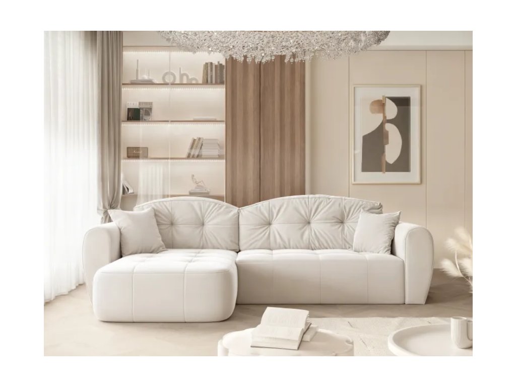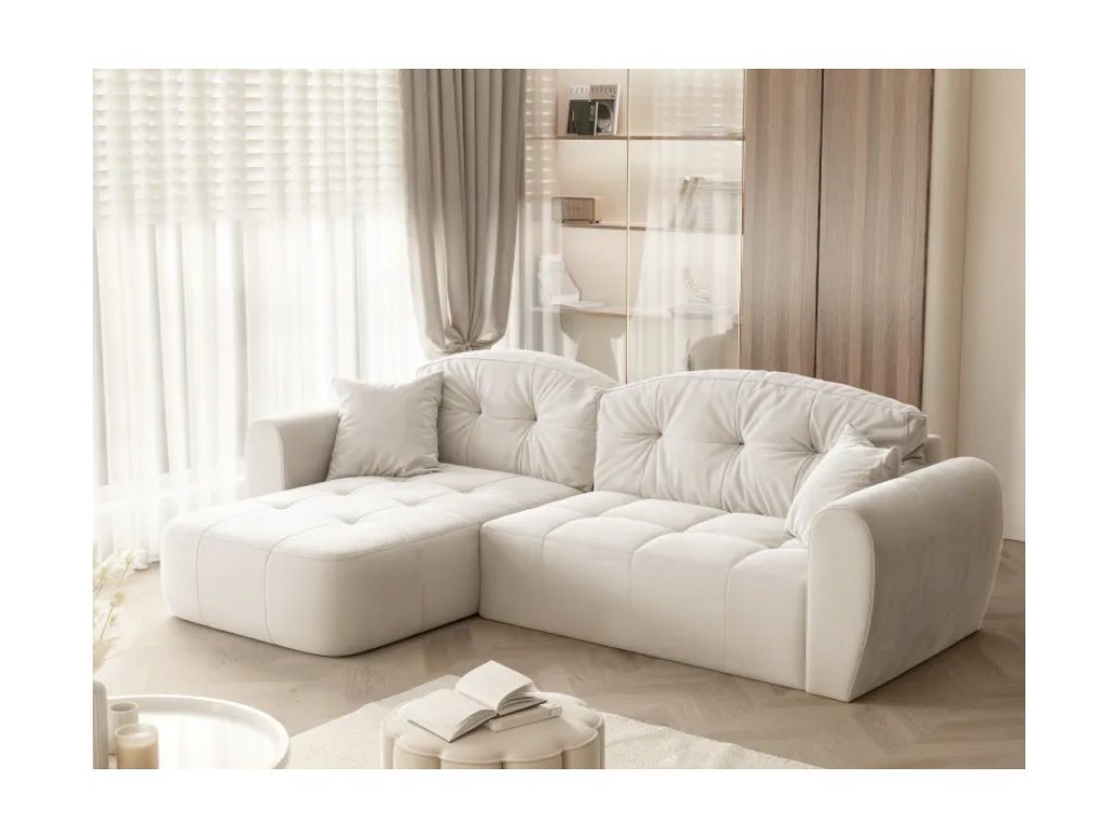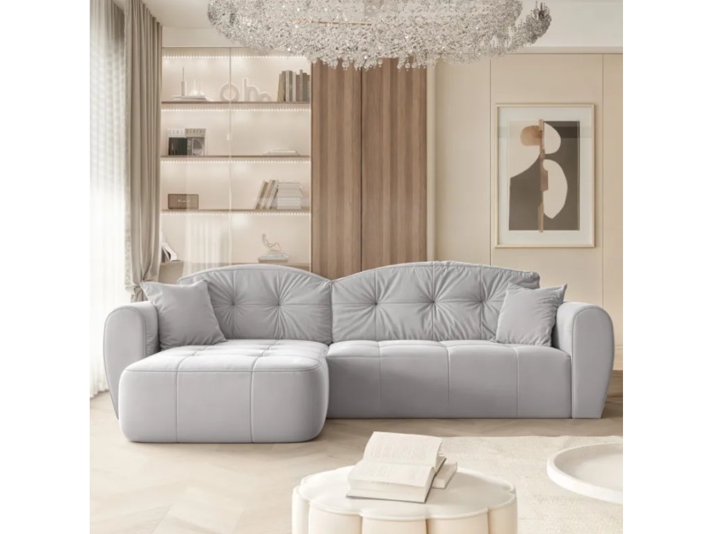 Rohová pohovka LUCAS je moderná čalúnená rohová pohovka, ktorá kombinuje každodenné pohodlie s praktickými prvkami vrátane funkcie na spanie a dostatočného úložného priestoru na posteľnú bielizeň.