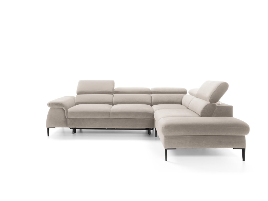 Rohová pohovka je vybavená nastaviteľnými opierkami hlavy , ktoré vám umožňujú prispôsobiť si polohu vašim individuálnym potrebám a zaručiť príjemné chvíle relaxácie. Rohová pohovka RUDY má navyše praktickú funkciu spania , ideálnu pre dve osoby, a vstavaný úložný priestor na posteľnú bielizeň , čo vám umožní udržiavať v miestnosti poriadok.