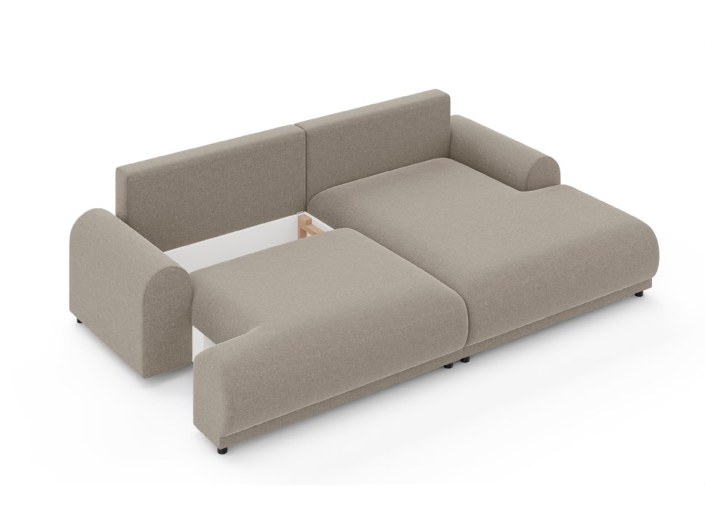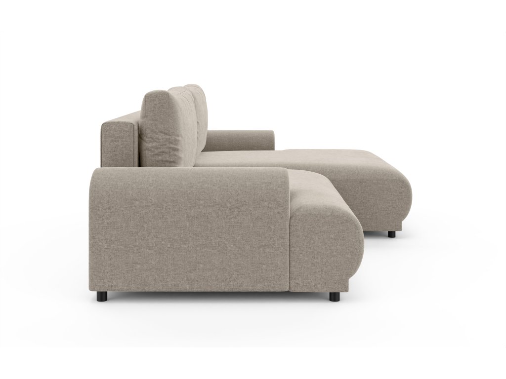 Pevná konštrukcia z drevotriesky, MDF, HDF, preglejky a masívneho dreva zaručuje stabilitu a odolnosť po celé roky používania. Sedadlo a operadlo sú vyplnené vysoko elastickou polyuretánovou penou, ktorá sa prispôsobí tvaru tela a poskytuje vysokú úroveň pohodlia bez ohľadu na polohu. Rohová pohovka má praktickú funkciu spania – v priebehu niekoľkých okamihov sa dá premeniť na pohodlné lôžko pre hostí alebo na každodenný relax. Vstavaný priestor na posteľnú bielizeň navyše umožňuje pohodlné uloženie paplónov, vankúšov alebo iných textílií, vďaka čomu je mimoriadne funkčným riešením pre moderné interiéry.