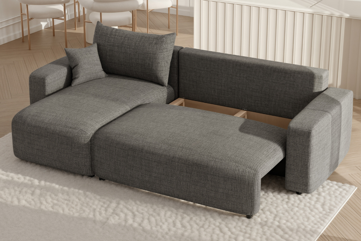 Sedačka s funkciou na spanie a posteľný box je praktickým kusom nábytku, ktorý plní dvojitú funkciu. Cez deň slúži ako pohodlné sedenie a podľa potreby sa dá premeniť na pohodlnú posteľ. Integrovaná zásuvka postele poskytuje ďalší úložný priestor pre posteľnú bielizeň a iné predmety, čo je užitočné najmä v domácnostiach s obmedzeným priestorom.