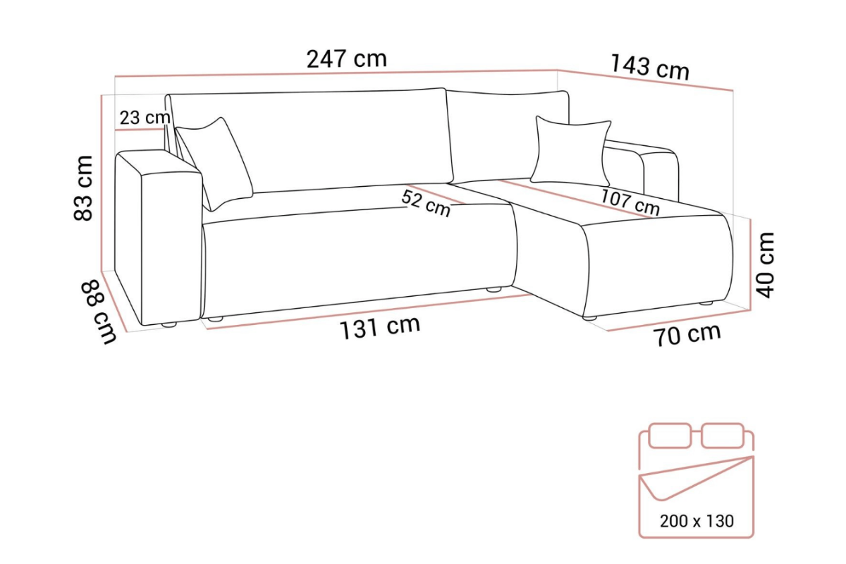 | Typ | Rohový rozkladací gauč, 3-sed |