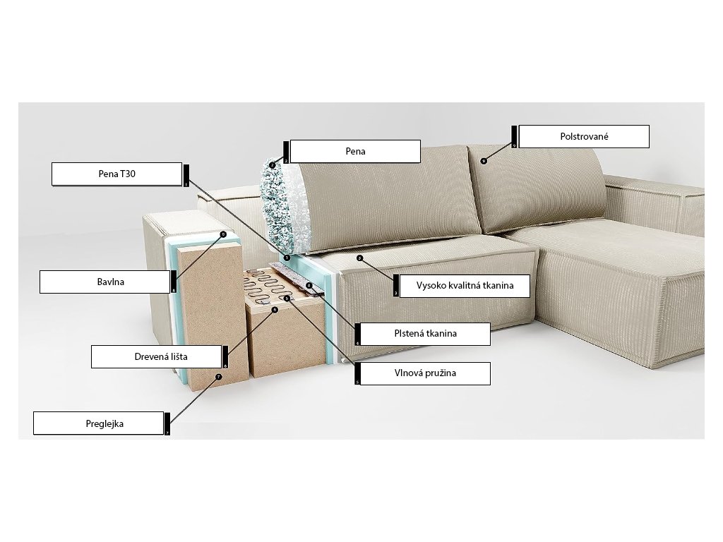 - rohová pohovka má zásobník na posteľnú bielizeň ,