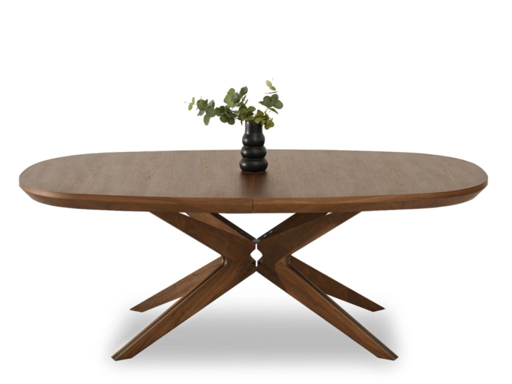 Rozkladací stôl DALLAS je stelesnením modernej elegancie s jemným odkazom na klasiku . Jeho rafinovaná forma, založená na originálnom, sochárskom podstavci, dodáva interiéru dizajnérsky charakter . Teplý odtieň dreva prináša útulnosť a vyvažuje minimalistickú líniu nábytku. Vďaka kombinácii moderných inšpirácií s klasickou masívnosťou sa stôl DALLAS perfektne hodí do štýlových jedální aj elegantných obývacích izieb . Je to kus nábytku, ktorý nielen zdobí priestor, ale aj zdôrazňuje jeho rafinovanú atmosféru.