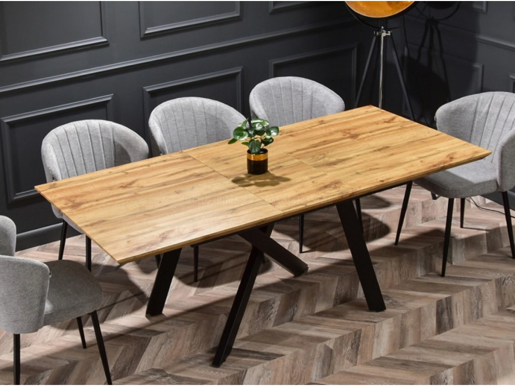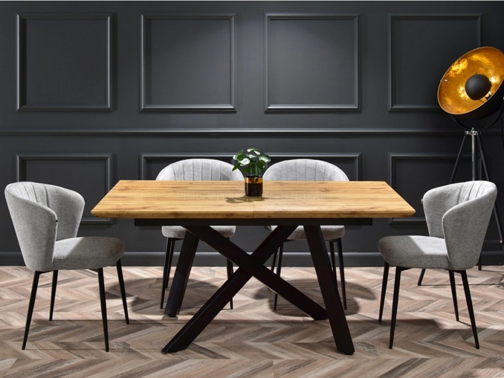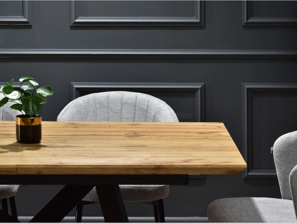 Prírodná štruktúra imitujúca dub je všestranná a nadčasová, vďaka čomu sa stôl MACK ľahko prispôsobí. Tento moderný stôl je určený do jedálne alebo obývačky . Môžete ho použiť v menšej verzii alebo ho v prípade potreby rozšíriť a vytvoriť tak väčšiu dosku stola. Stôl MACK uspokojí aj tých najnáročnejších zákazníkov, pretože obsahuje užitočné prvky do jedálne.