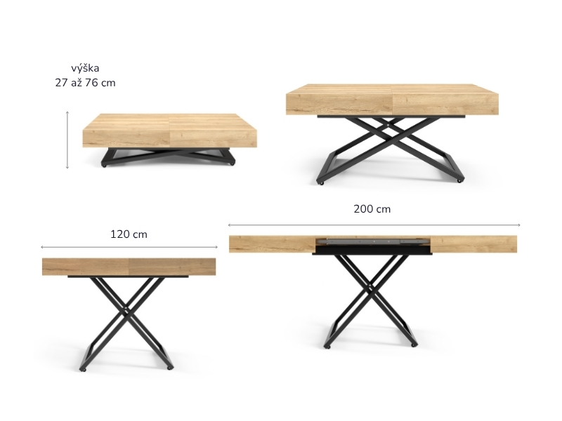 - Multifunkčný rozkladací stolík s nastaviteľnou výškou 27-76 cm - od nízkeho konferenčného stolíka po plnohodnotný jedálenský stôl.