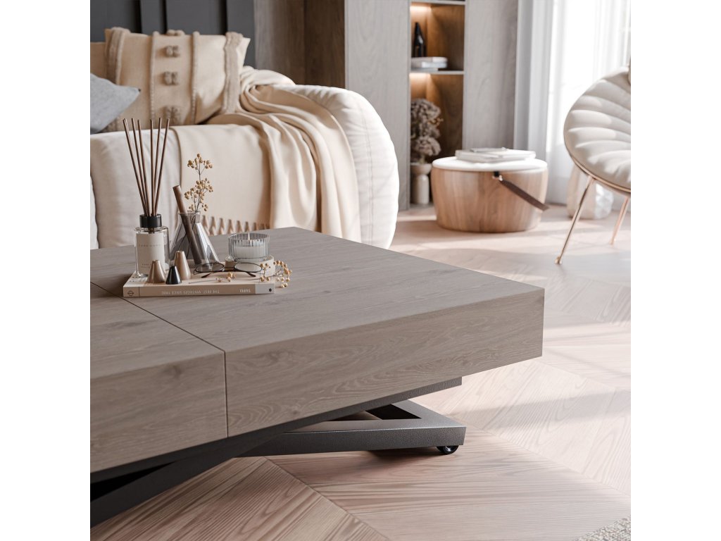 Jedna taburetka, dva režimy – s nízkou výškou slúži ako konferenčný stolík ku gauču, v najvyššej polohe pohodlne zastúpi jedálenský stôl pre návštevy alebo rodinné hry. ZOE X je riešenie pre dynamické domácnosti, kde sa priestor mení podľa dňa a potreby.