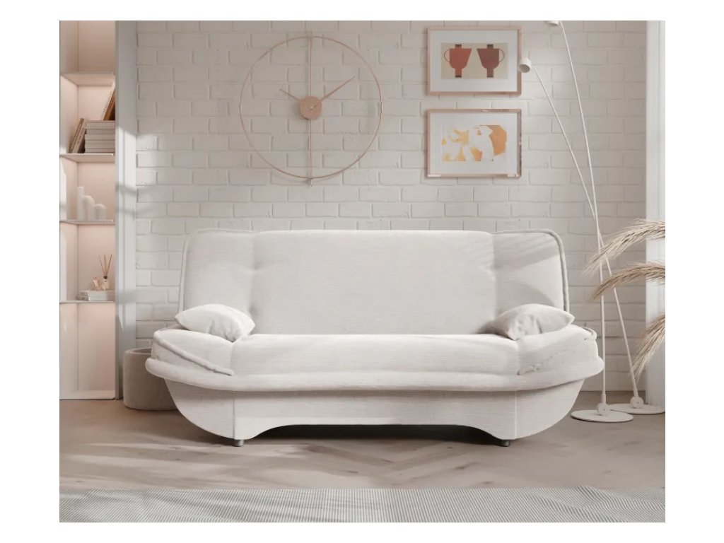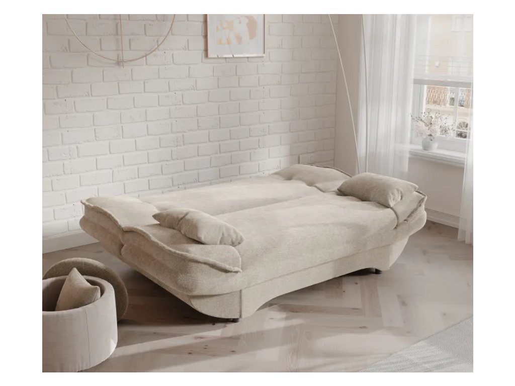 Pohovka ORLIN je perfektným riešením do obývačky, pracovne alebo hosťovskej izby, ktorá kombinuje každodenné pohodlie s praktickými funkciami. Vďaka funkcii automatického spánku ju môžete v priebehu niekoľkých sekúnd premeniť na pohodlnú posteľ, čím zabezpečíte pohodlný odpočinok pre seba alebo hostí. Úložný priestor pod sedadlom vám umožňuje jednoducho uložiť prikrývky, vankúše a posteľnú bielizeň, čím udržíte izbu upratanú.