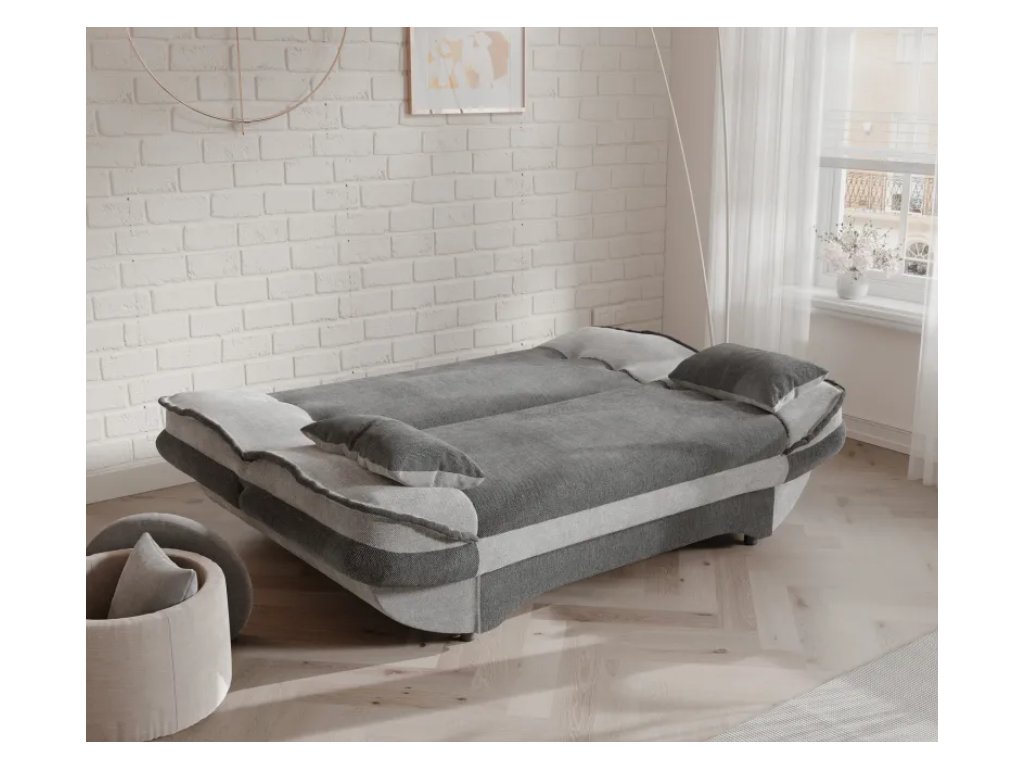 Rozkladacia pohovka OSLO s úložným priestorom na posteľnú bielizeň kombinuje moderný dizajn, pohodlie a funkčnosť, ideálna do obývačky aj hosťovskej izby.