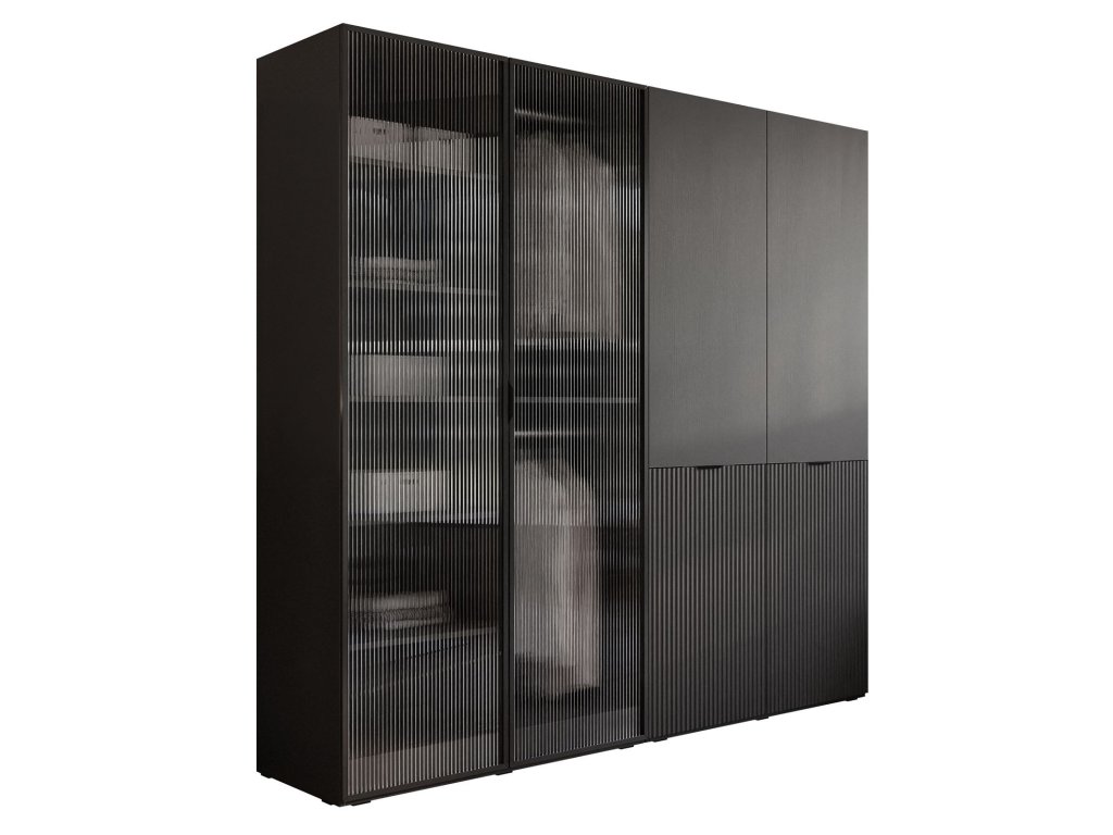 Vďaka vnútornému usporiadaniu šatníka je mimoriadne priestranná a funkčná . Obrovský priestor úspešne pojme všetko potrebné, čo vám umožní zostať v poriadku. Vnútro skrine obsahuje množstvo políc , výklenok s pripevnenou tyčou na vešiaky a dve priestranné zásuvky. Toto riešenie znamená, že do šatníka sa perfektne zmestí ako elegantné oblečenie zavesené na vešiakoch, tak aj oblečenie poskladané do kociek.