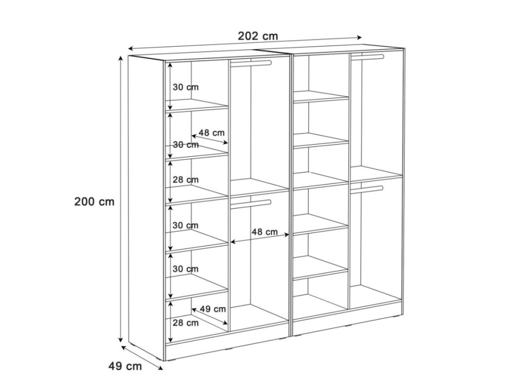 - v cene šatníka je 12 políc a 4 tyče na šaty,
