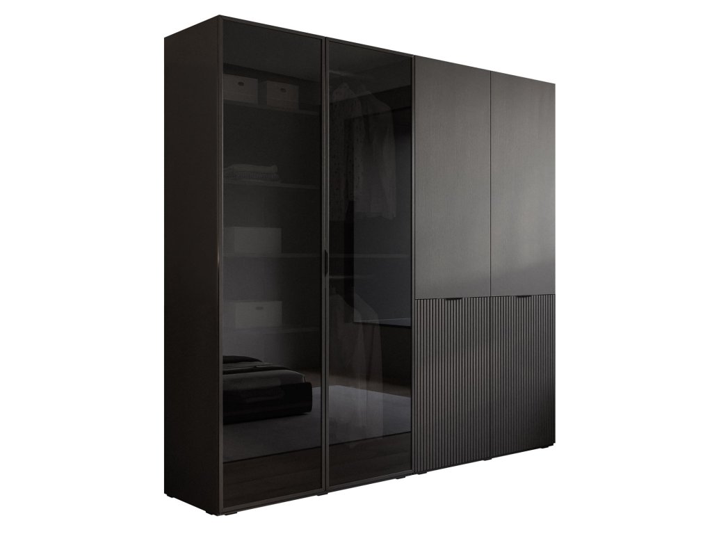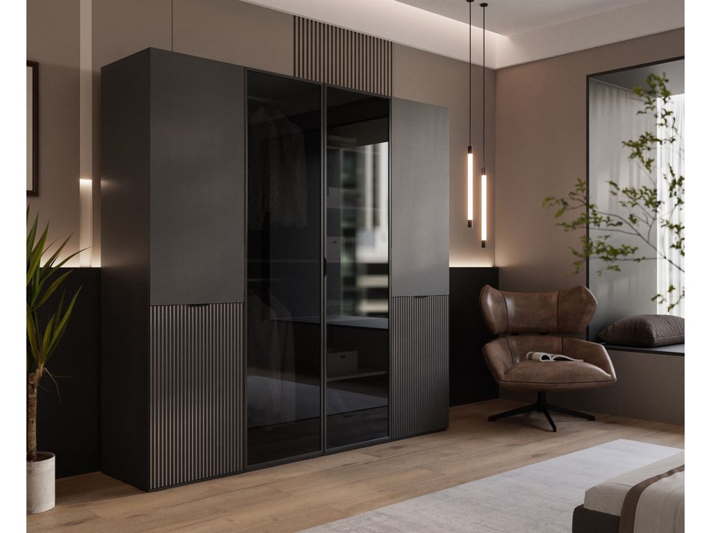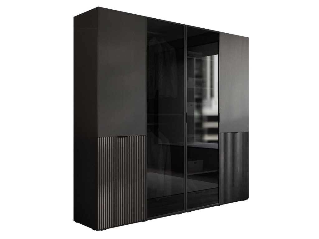 Šatníková skriňa ALISIA II čierna + sklo číre 208 x 200 cm