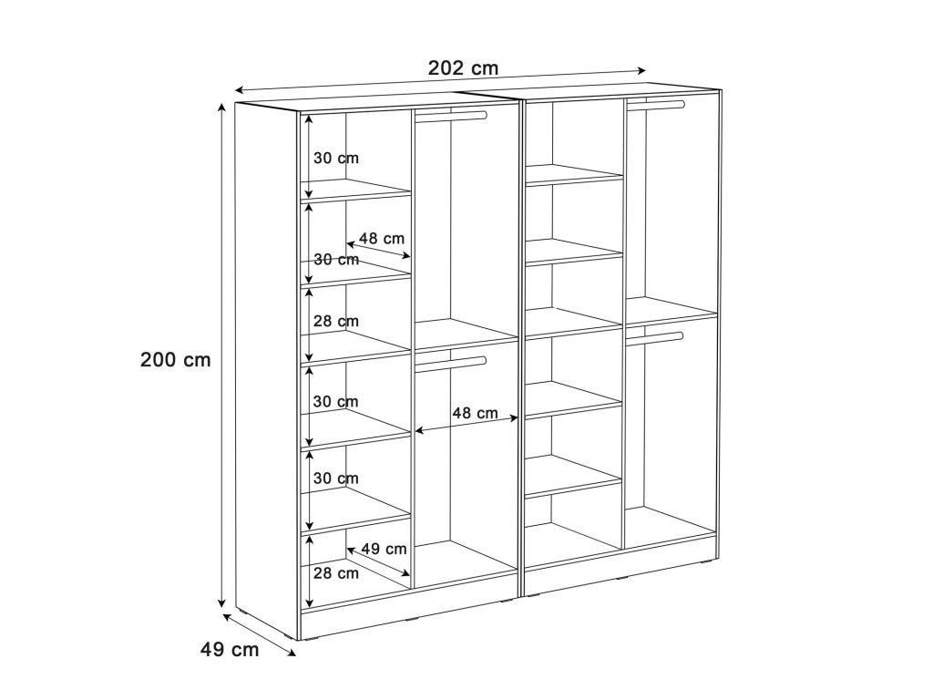 - zostava dvoch šatníkových skríň, rozmer 100 cm,
