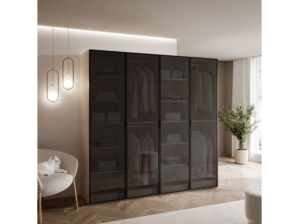 Šatníková skriňa ALISIA kašmír + sklo tmavé 208 x 200 cm