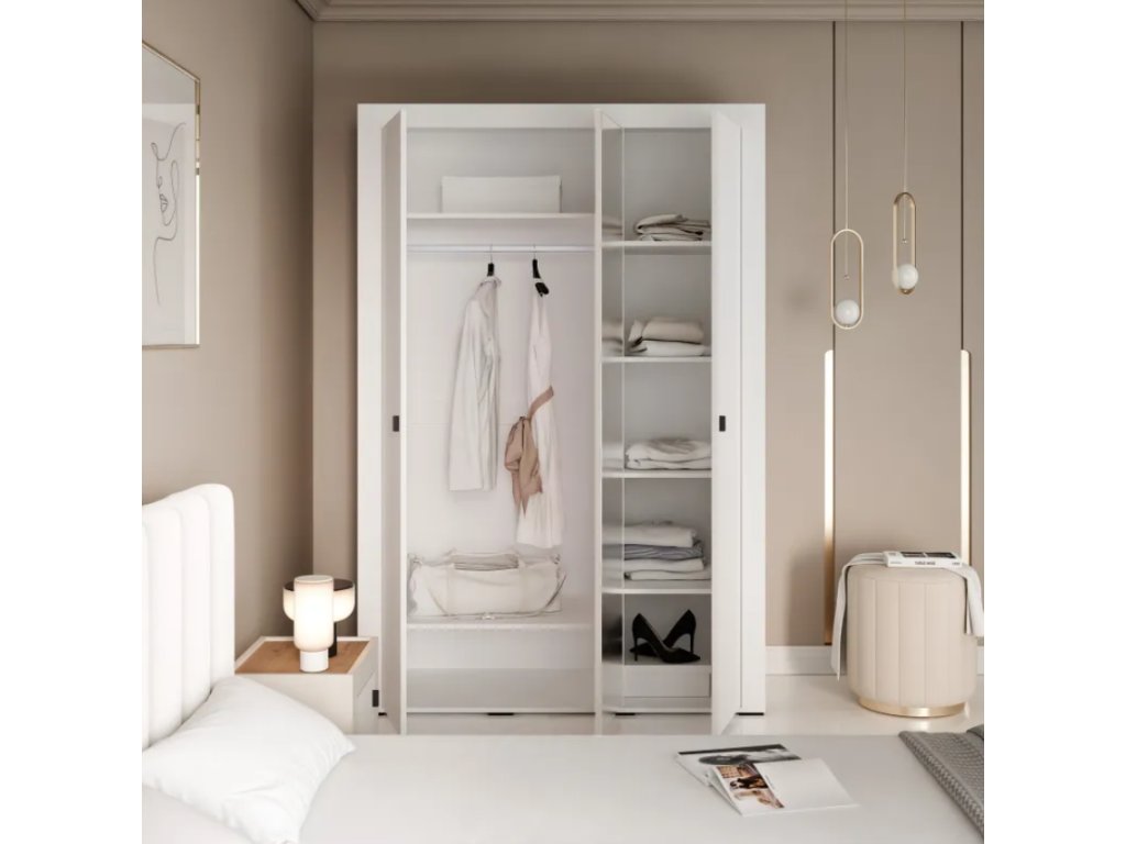 Trojdverová skriňa je veľmi priestranná , čo umožňuje jednoduché uloženie oblečenia, obuvi a doplnkov. Interiér bol navrhnutý s ohľadom na maximálnu funkčnosť a jednoduché používanie – priestor na zavesenie vecí je doplnený policami, ktoré umožňujú organizované skladovanie.