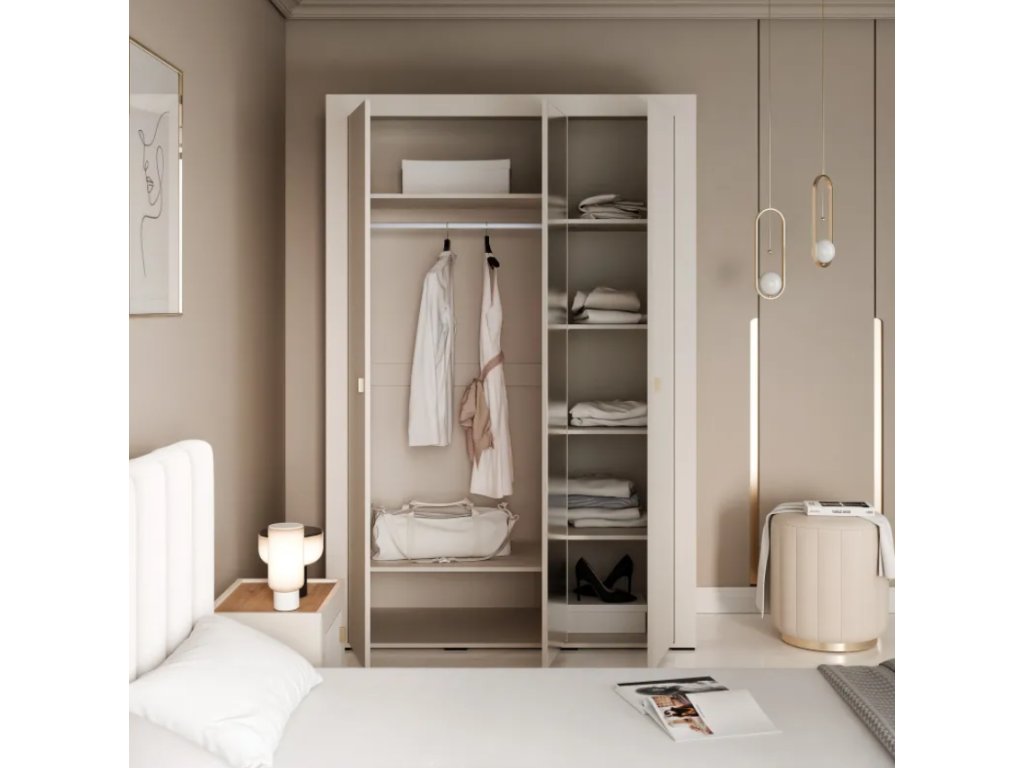 Trojdverová skriňa je veľmi priestranná , čo umožňuje jednoduché uloženie oblečenia, obuvi a doplnkov. Interiér bol navrhnutý s ohľadom na maximálnu funkčnosť a jednoduché používanie – priestor na zavesenie vecí je doplnený policami, ktoré umožňujú organizované skladovanie.
