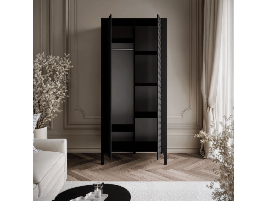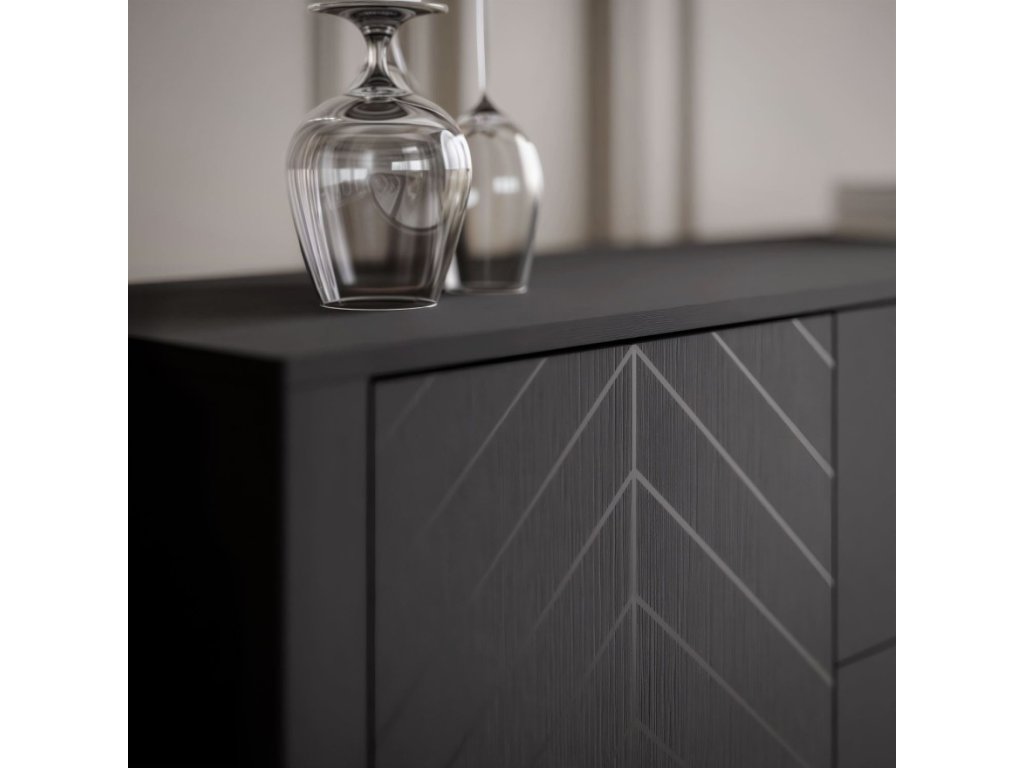 Nábytok z tejto série sa vyznačuje precíznym remeselným spracovaním a prepracovanými detailmi, ktoré mu dodávajú jedinečný charakter. Výrazné predné strany zdobené UV potlačou v tvare rybej kosti dodávajú hĺbku, zatiaľ čo štíhle kovové nohy dodávajú nádych ľahkosti a jednoduchého čistenia. Kolekcia je dostupná v dvoch farebných prevedeniach – kašmírovo matnej a čiernej s viditeľnou drevnou štruktúrou , vďaka čomu sa nábytok hodí do rôznych interiérových dizajnov.