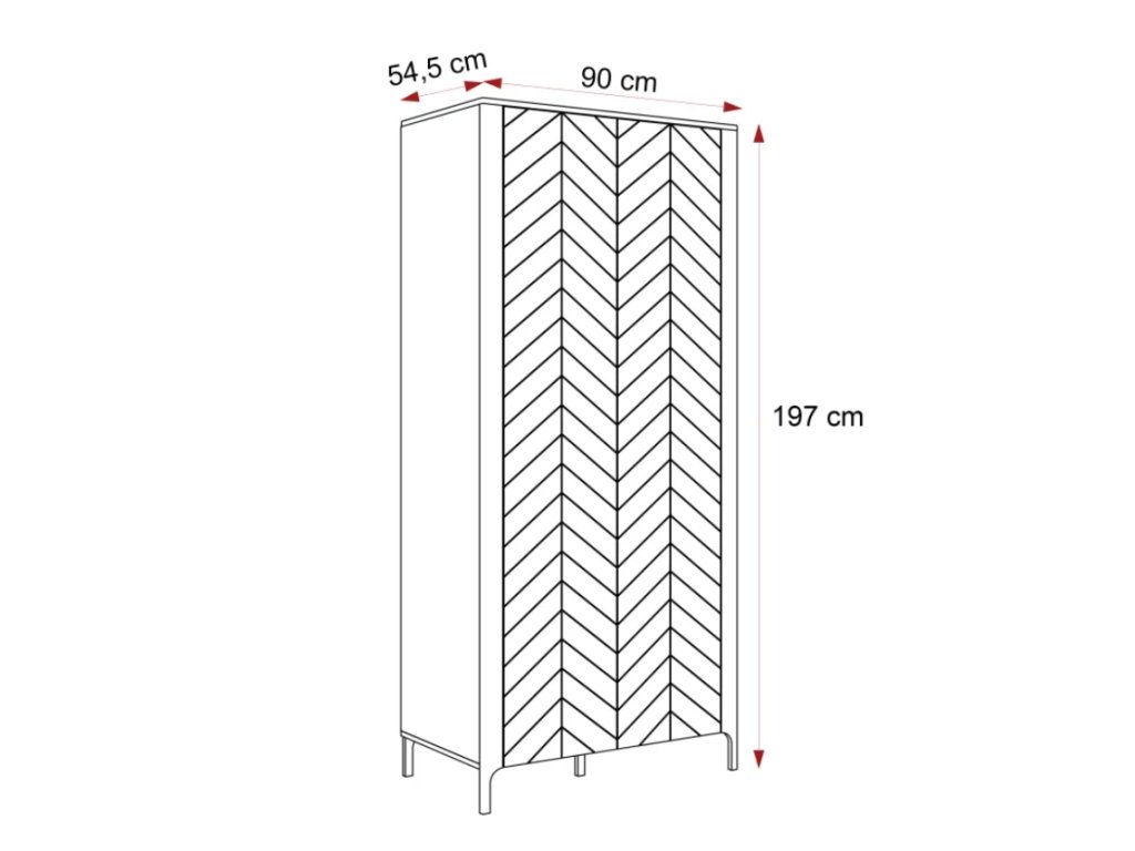 Moderný dizajn s geometrickým vzorom rybej kosti kombinuje štýl a funkčnosť a ponúka priestor na vešiaky, štyri priestranné police a spodnú plochu na topánky alebo tašky, zatiaľ čo vysoko kvalitná matná doska nábytku robí z tohto kusu nábytku perfektný doplnok do industriálnych aj moderných interiérov.