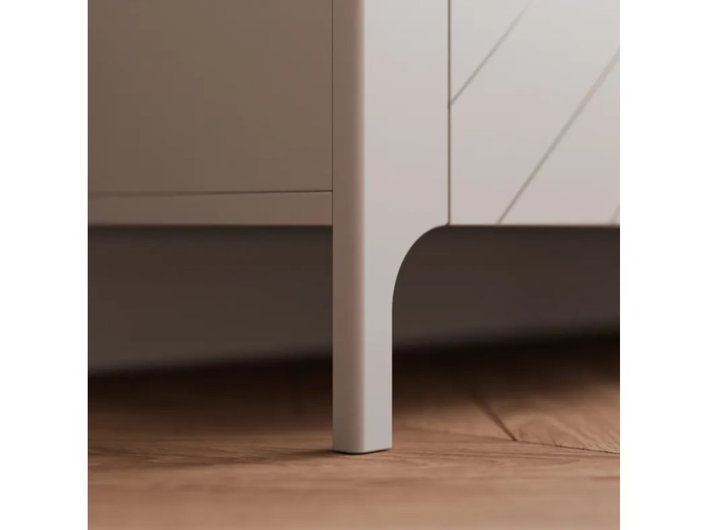 Nábytok z tejto série sa vyznačuje precíznym remeselným spracovaním a prepracovanými detailmi, ktoré mu dodávajú jedinečný charakter. Výrazné predné strany zdobené UV potlačou v tvare rybej kosti dodávajú hĺbku, zatiaľ čo štíhle kovové nohy dodávajú nádych ľahkosti a jednoduchého čistenia. Kolekcia je dostupná v dvoch farebných prevedeniach – kašmírovo matnej a čiernej s viditeľnou drevnou štruktúrou , vďaka čomu sa nábytok hodí do rôznych interiérových dizajnov.