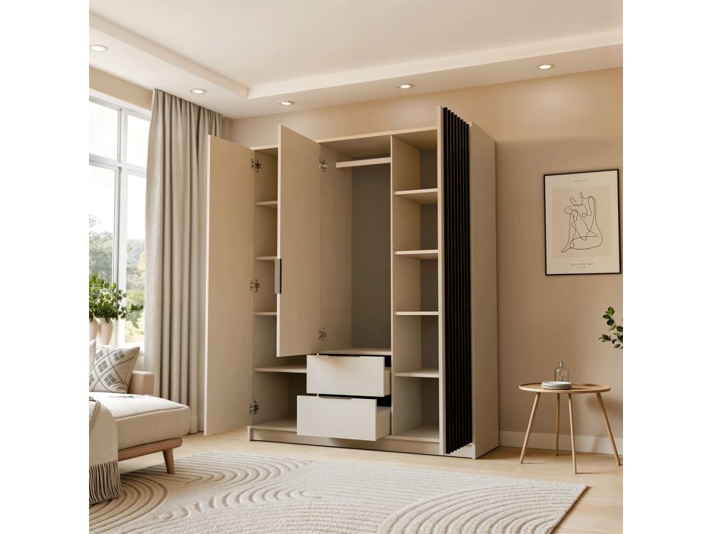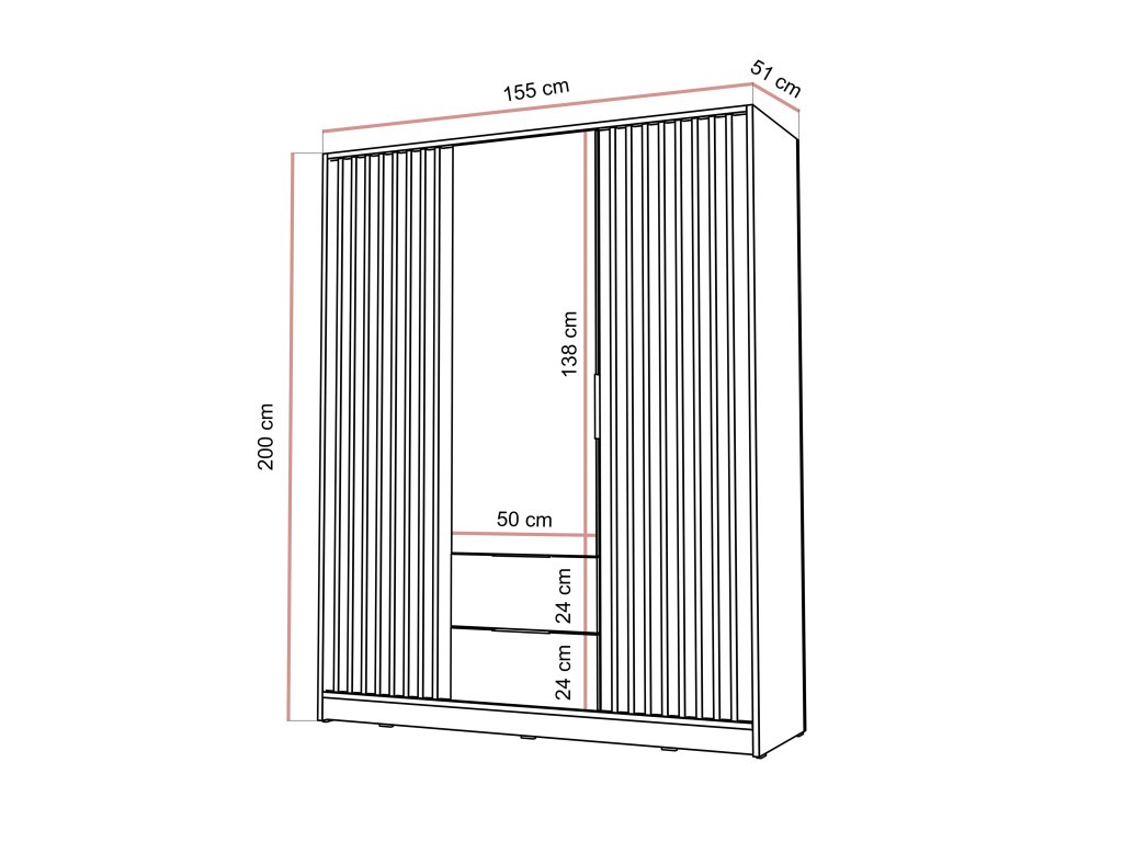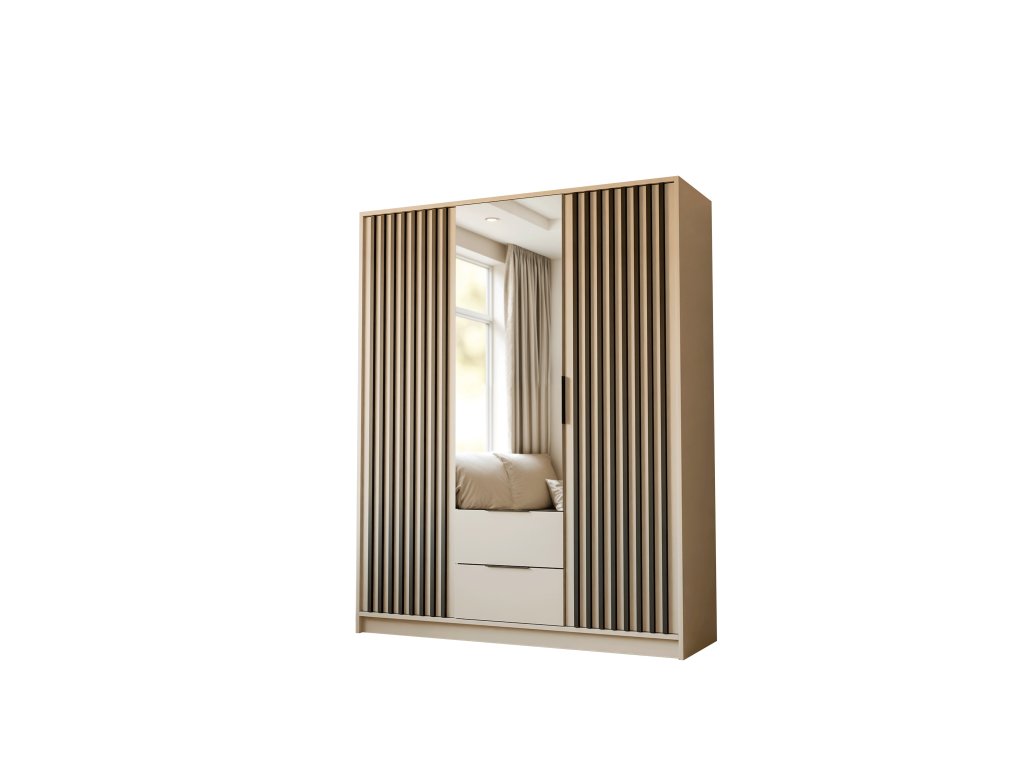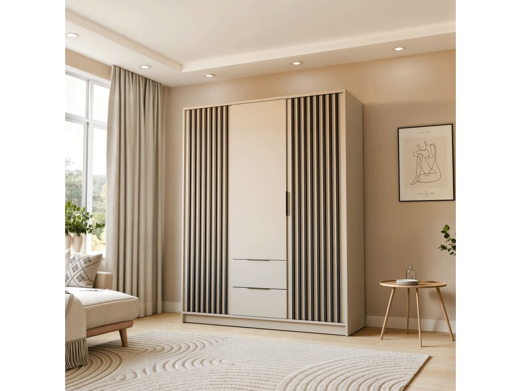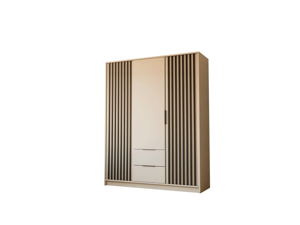 Šatníková trojdverová skriňa JONA s lamelami 155 cm, kašmír + čierna