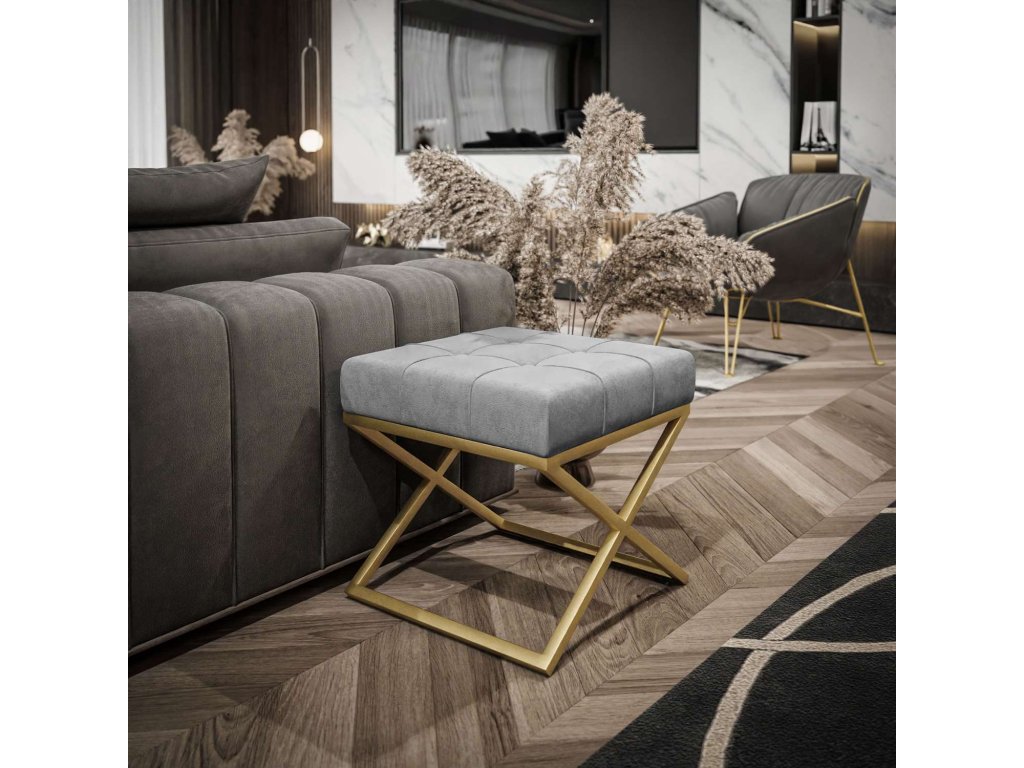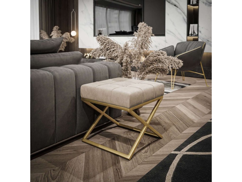 Veľká a neuveriteľne pohodlná taburetka, založená na pevných, štýlových nohách. Jej výhody nájdu uplatnenie nielen v obývačke, ale aj v detskej izbe a ďalších miestnostiach. Prvkom, ktorý odlišuje tento model, je efektný zlatý rám, na ktorom spočíva sedadlo vyrobené s dôrazom na detail.