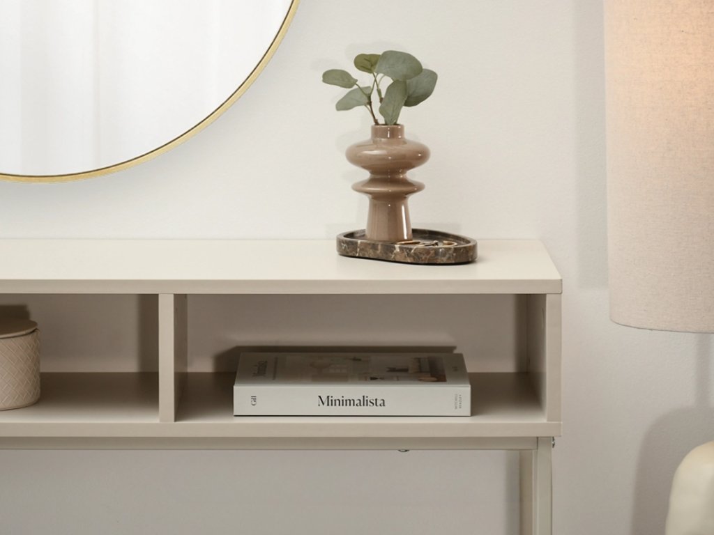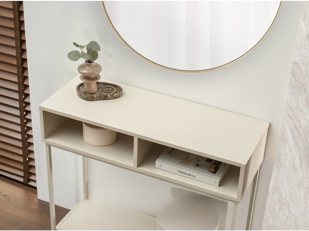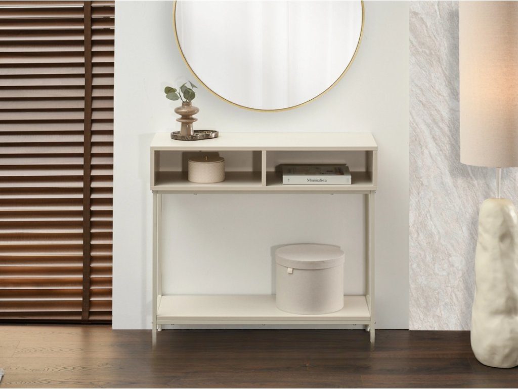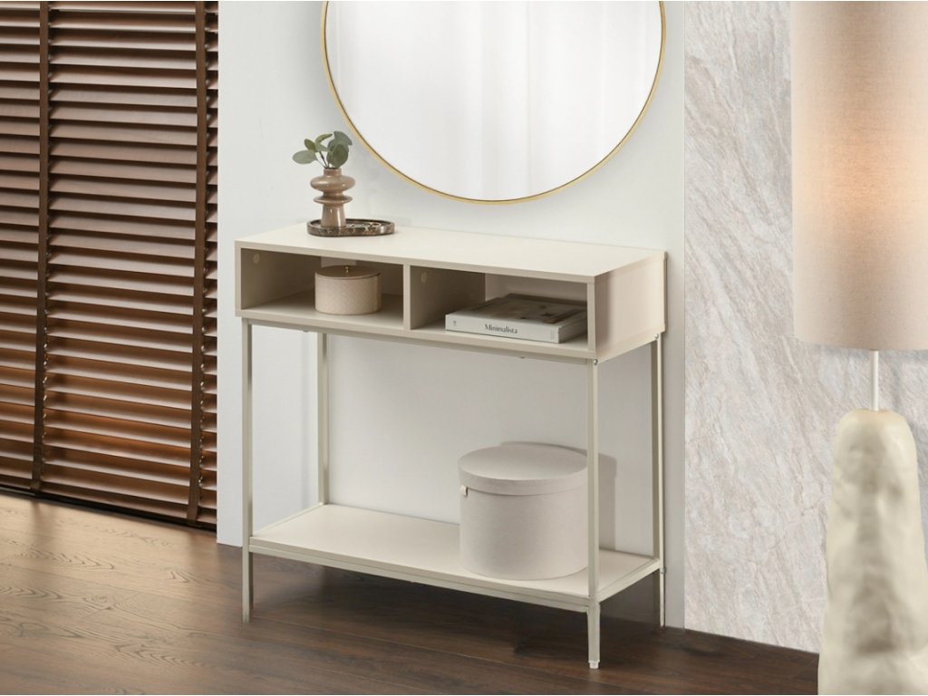 Objavte jedinečný konzolový stolík JILIAN v jemnom krémovom odtieni , ktorý nielenže doplní každý interiér, ale dodá mu aj nádych elegancie a funkčnosti.