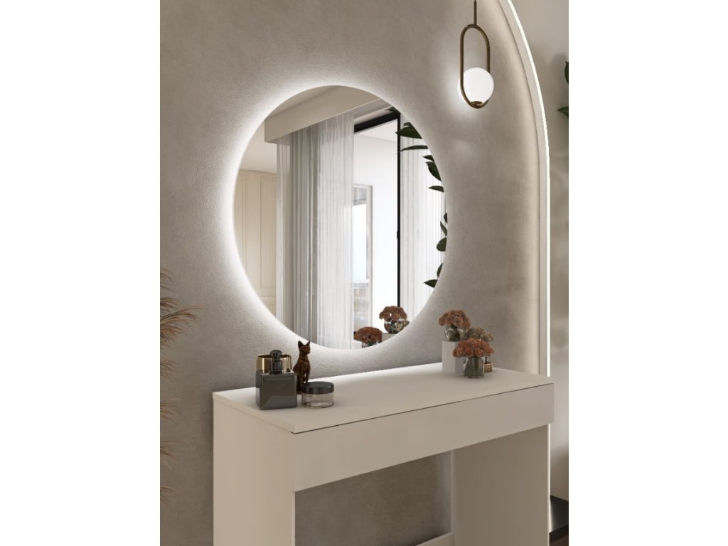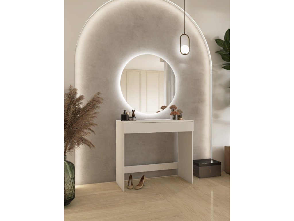 Vytvorte si štýlový a funkčný kútik na líčenie so sadou klasického bieleho toaletného stolíka a okrúhleho zrkadla s LED osvetlením 80 cm od značky OKSTYL.