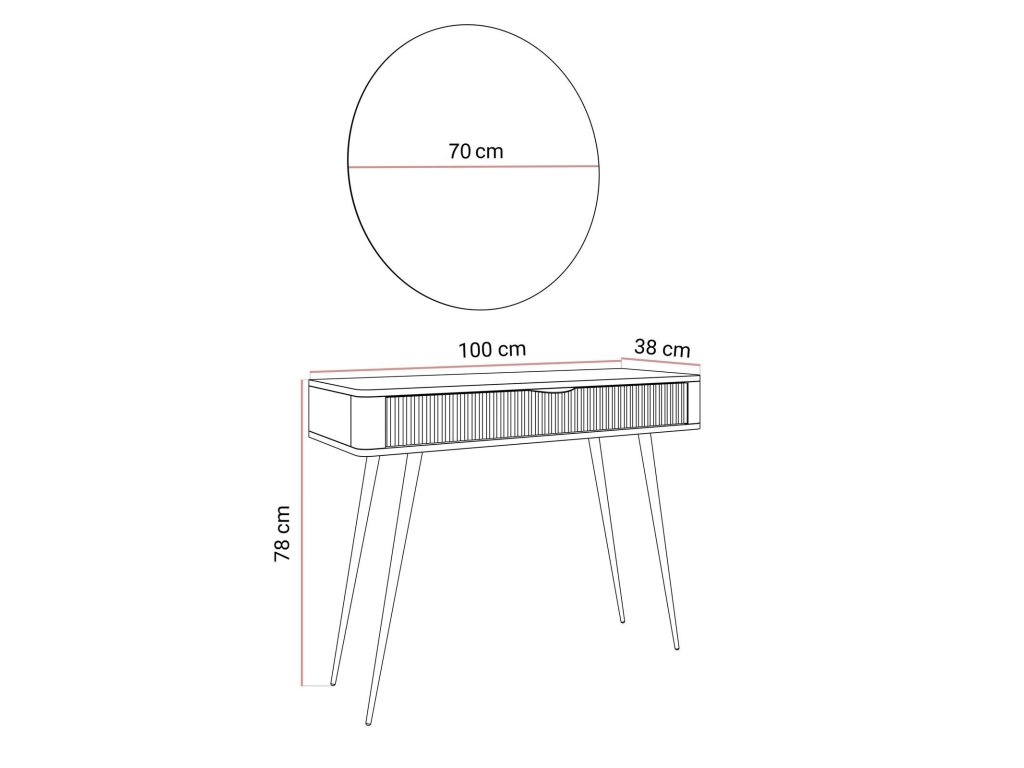 Toaletný stolík Turner v dvoch farebných variantoch ponúka nielen praktické možnosti úložného priestoru, ale aj štýlový doplnok, ktorý dodá vášmu interiéru moderný charakter a zvýrazní jedinečný dizajn miestnosti.