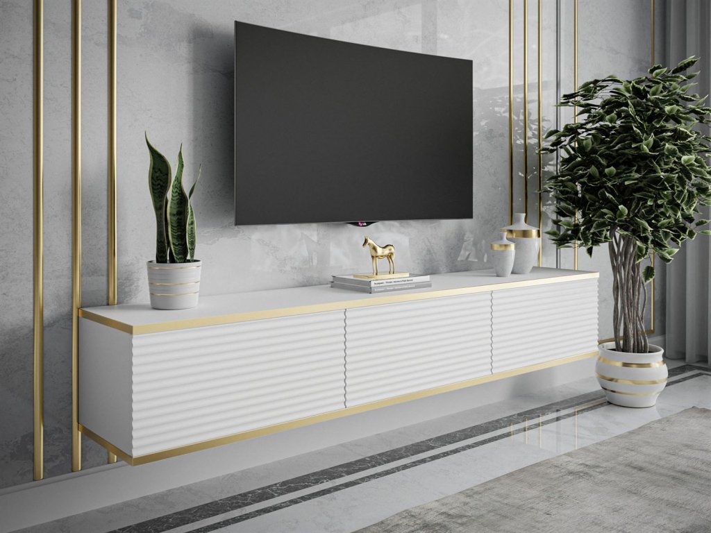 TV skrinka BOSTON II 175 cm biela matná + zlatá