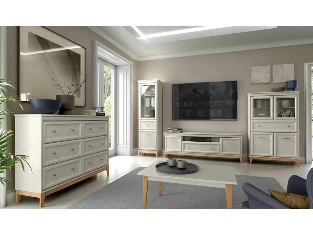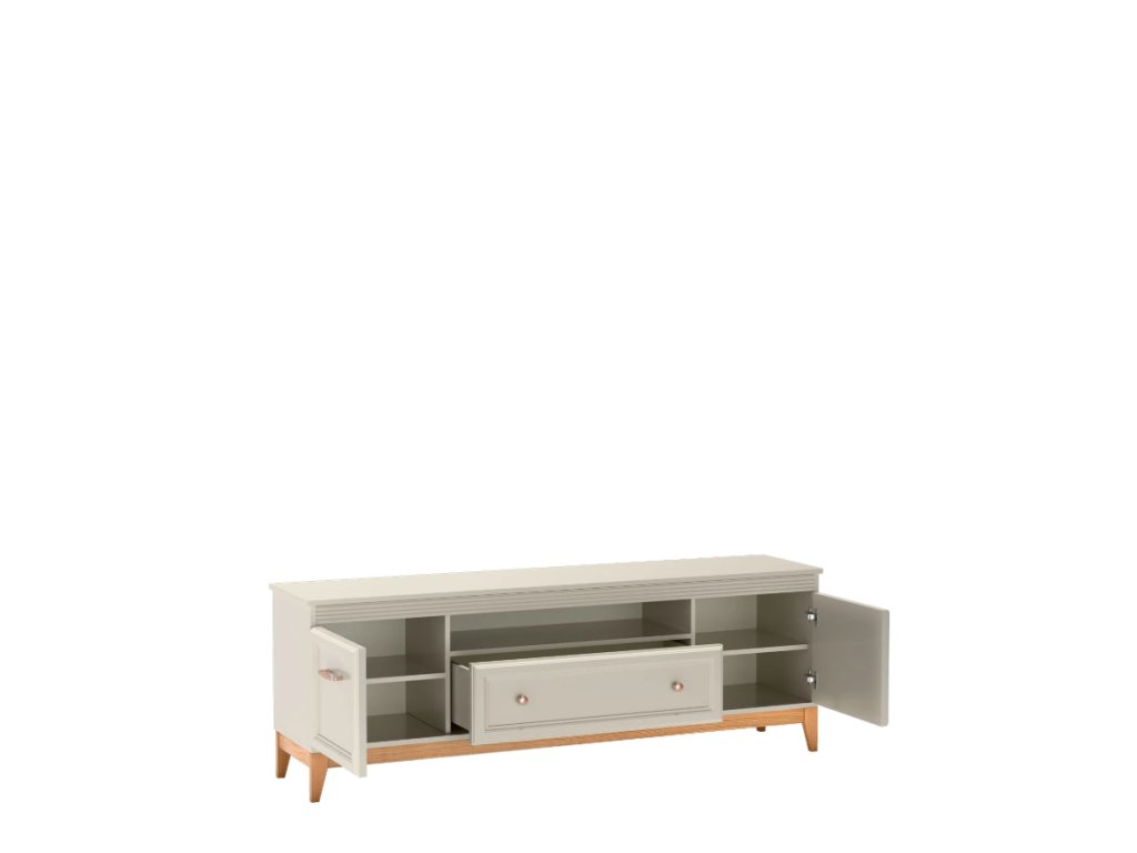 Dodajte svojej obývačke eleganciu a funkčnosť s TV skrinkou ANDREW . Doplnený drevenými nohami a decentnými úchytkami, robí zo skrinky ideálny priestor pre interiéry v modernom , škandinávskom aj klasickom štýle .