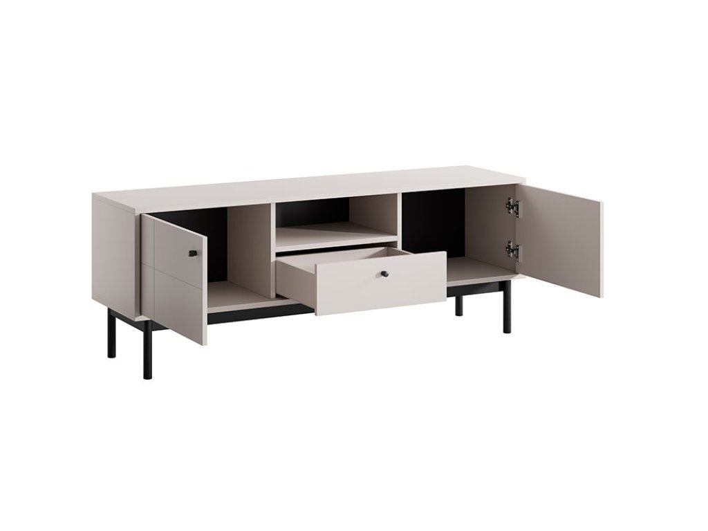 TV stolík BRIELLE v elegantnom odtieni kašmír je dokonalou kombináciou funkčnosti a nadčasového štýlu. Svetlý dekor s matným povrchom vnesie do vašej obývačky sviežosť a vizuálnu ľahkosť, zatiaľ čo praktické riešenie úložného priestoru vám pomôže udržať poriadok a organizáciu.