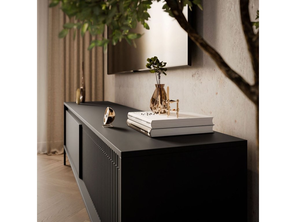Kolekcia DONNA v béžových farbách vám umožní zariadiť izby, ktoré sú funkčné a praktické a zároveň originálne, moderné a subtílne. To, čo túto kolekciu charakterizuje a robí ju jedinečnou, sú módne drážky použité na niektorých predných stranách MDF a pásik pod vrchným dielom, ako aj hladké predné diely predĺžené dopredu. Vďaka kovovým nožičkám lakovaným vo farbe dosky a bezúchytkovému otváraniu čiel vnesie tento nábytok do interiéru pocit pokoja a harmónie.