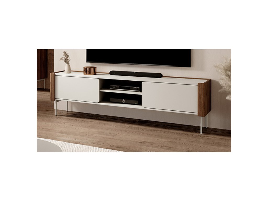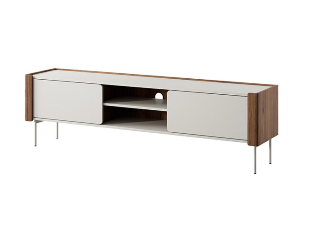 Doprajte svojej obývačke eleganciu a praktickosť s TV stolíkom FARAH, ktorý zaujme moderným dizajnom a teplou farebnou kombináciou kašmírového matu a orechového dreva. Tento štýlový stolík je ideálnym riešením pre tých, ktorí hľadajú funkčný nábytok bez kompromisov na vzhľade.