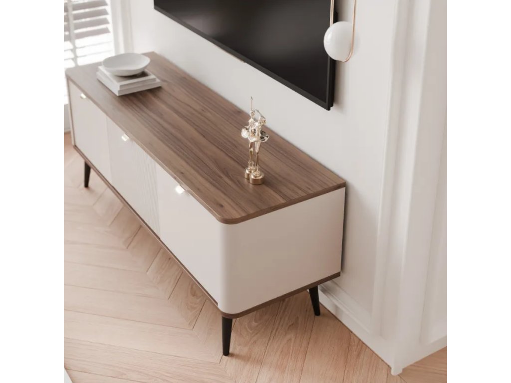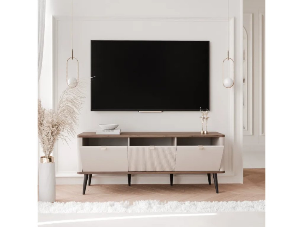 TV skrinka NICOLA so šírkou 130 cm je štýlový a praktický kus nábytku, ktorý sa bude perfektne hodiť do moderného interiéru. Vybavená tromi priestrannými úložnými priestormi a systémom tichého zatvárania zaručuje pohodlné skladovanie a pohodlie každodenného používania.