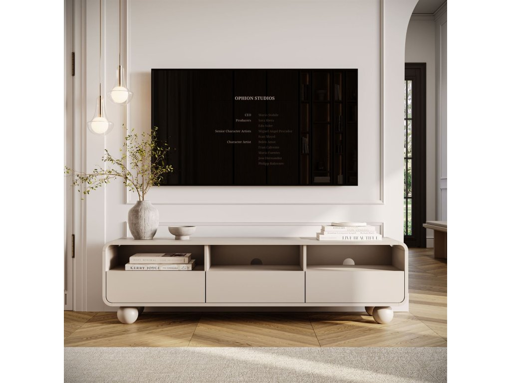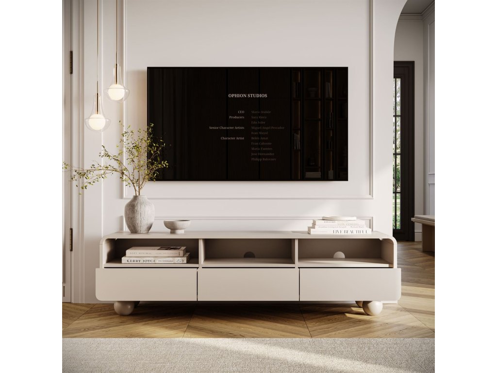 TV stolík PASCAL kombinuje eleganciu a funkčnosť v ľahkom a modernom dizajne. Dokonale usporiada váš multimediálny priestor bez toho, aby obetoval estetiku a štýl.