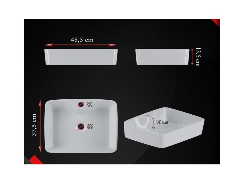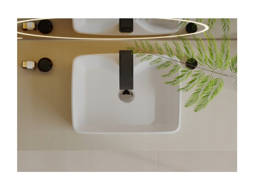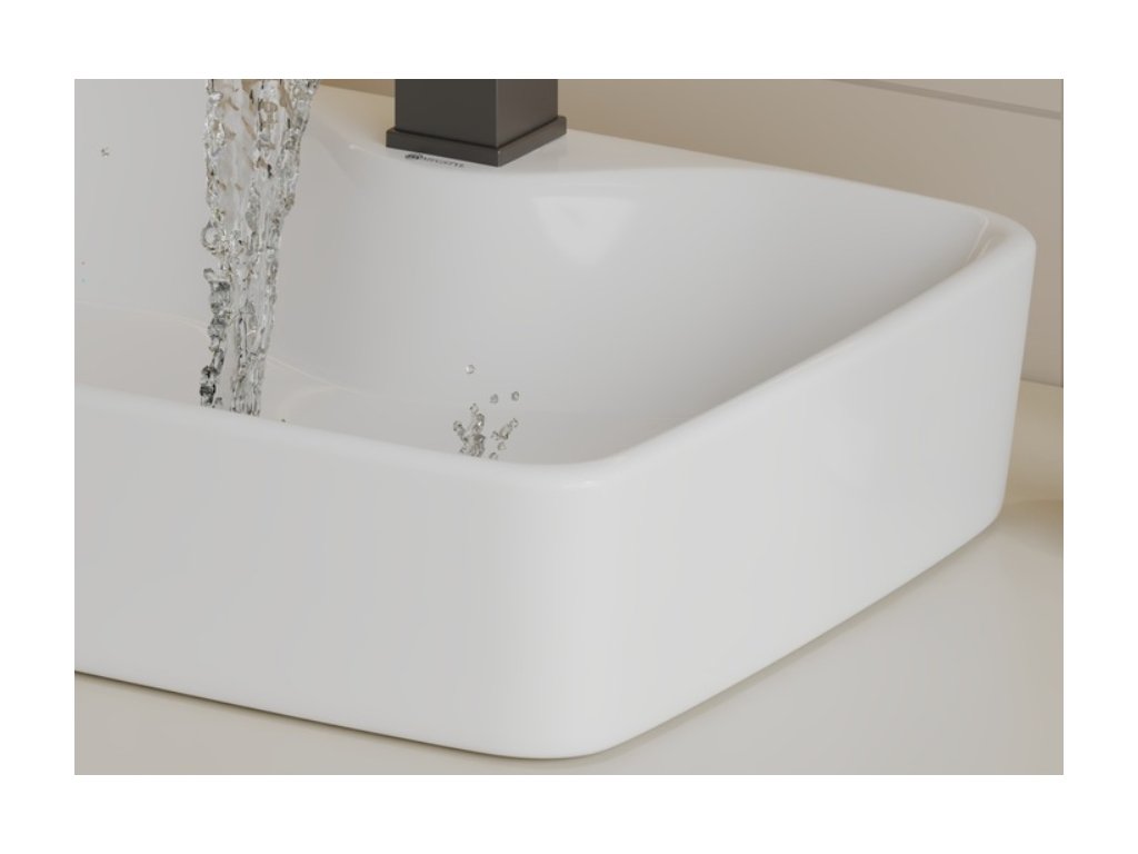 Vďaka svojim kompaktným rozmerom (48 x 37 cm) ponúka ideálny kompromis medzi priestorovým komfortom a úsporou miesta, vďaka čomu sa hodí do veľkých rodinných kúpeľní, ale aj do štýlových toaliet pre hostí. Jeho výška 13 cm zabezpečuje pohodlné umývanie rúk bez zbytočného špliechania vody von.