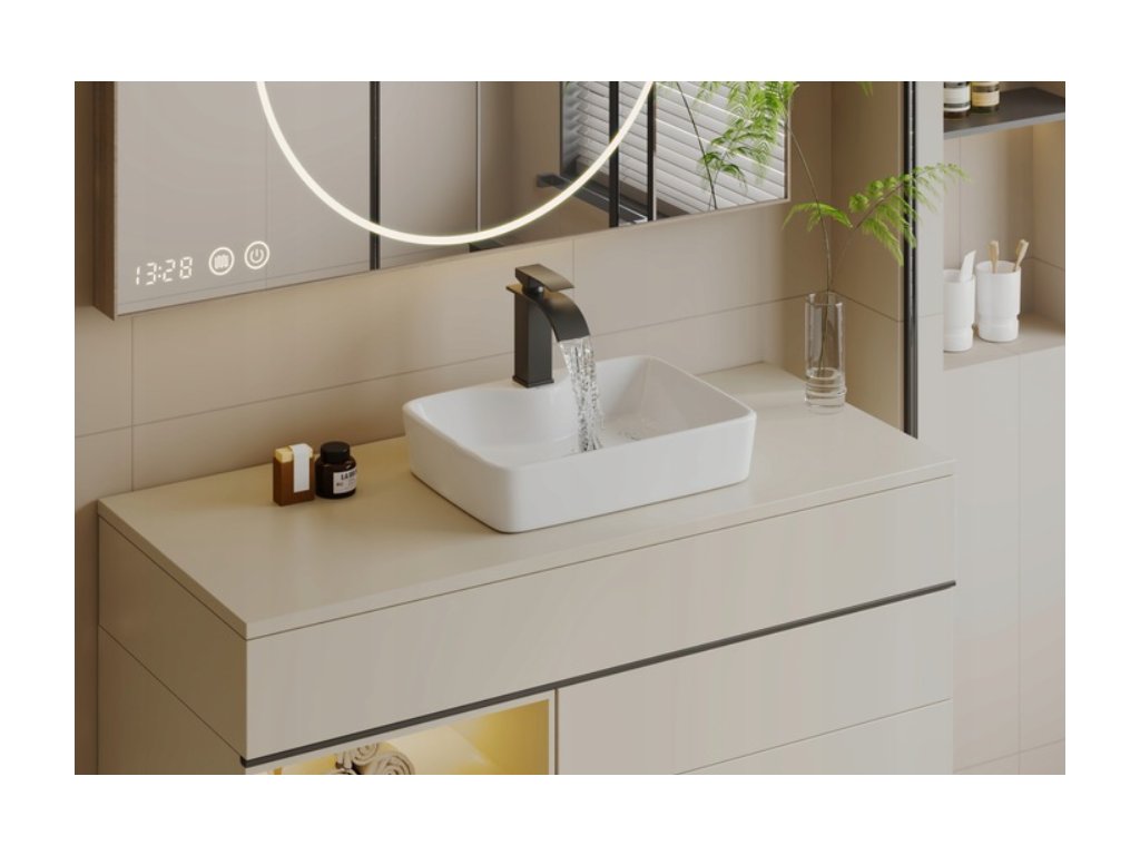 Popis produktu: Dodajte svojej kúpeľni nádych modernej elegancie s voľne stojacim umývadlom LORANA. Toto umývadlo je navrhnuté pre inštaláciu na dosku alebo kúpeľňovú skrinku, čím sa stáva nielen funkčným prvkom, ale aj výrazným dizajnovým doplnkom vášho interiéru.