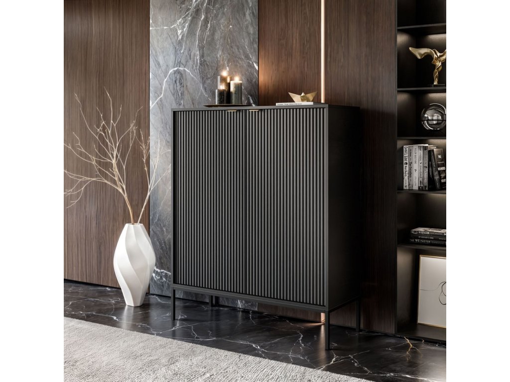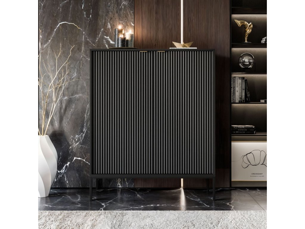 Vysoká komoda CORA čierna matná + čierne nohy