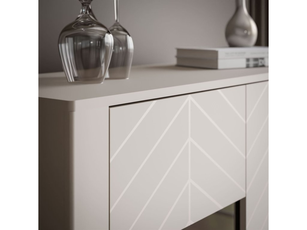 - Čelá vyrobené z laminovanej nábytkovej dosky s hrúbkou 16 mm s ozdobným vzorom rybej kosti.